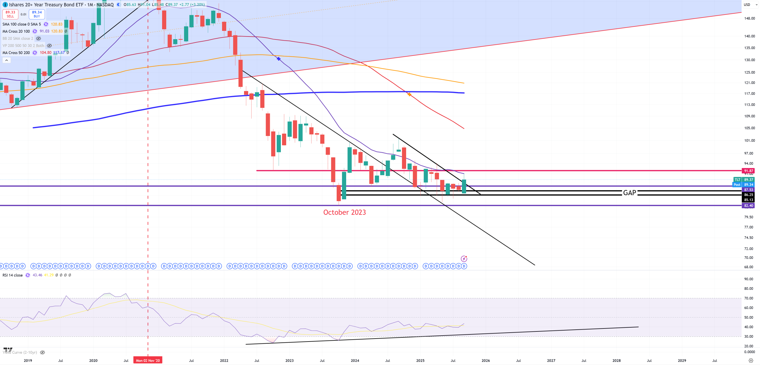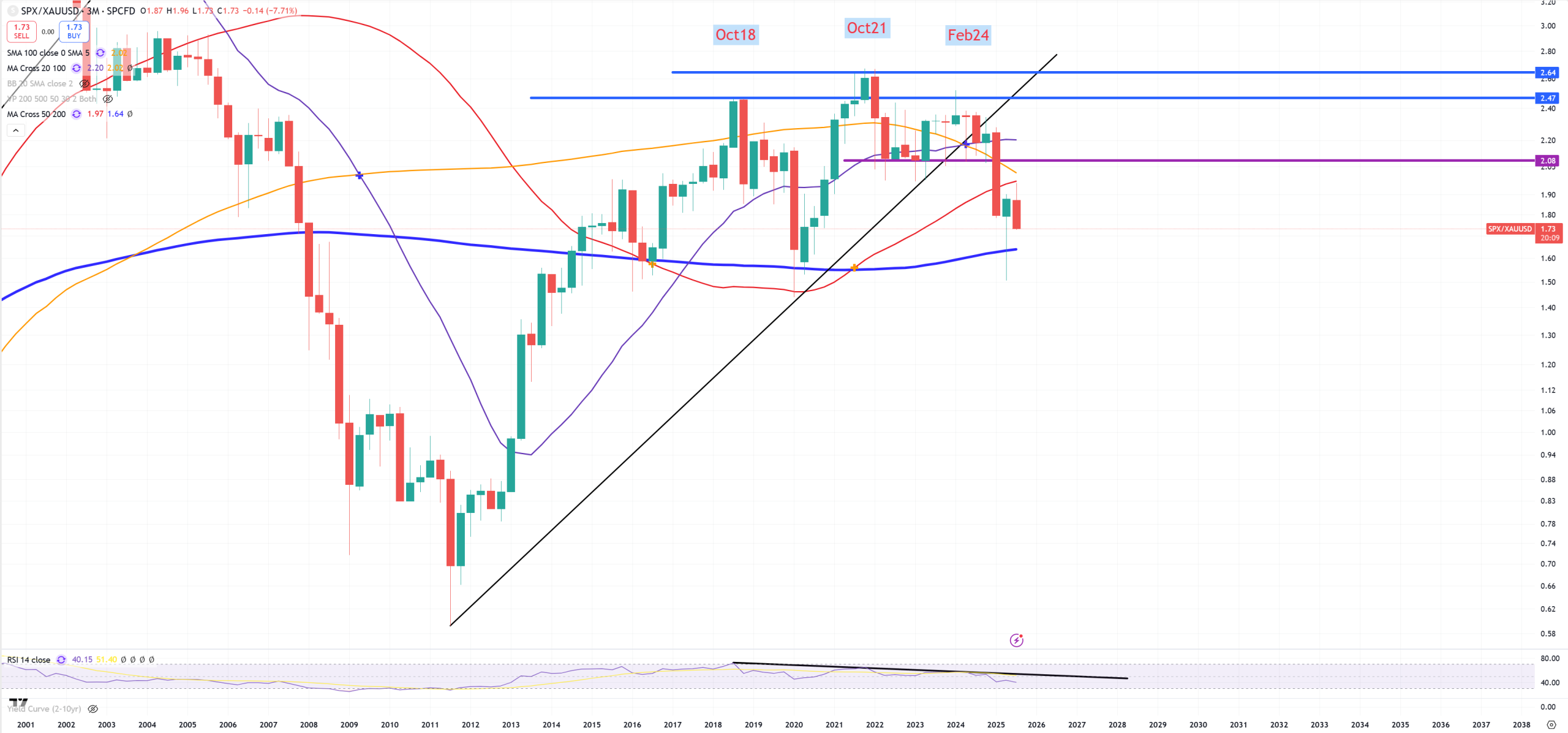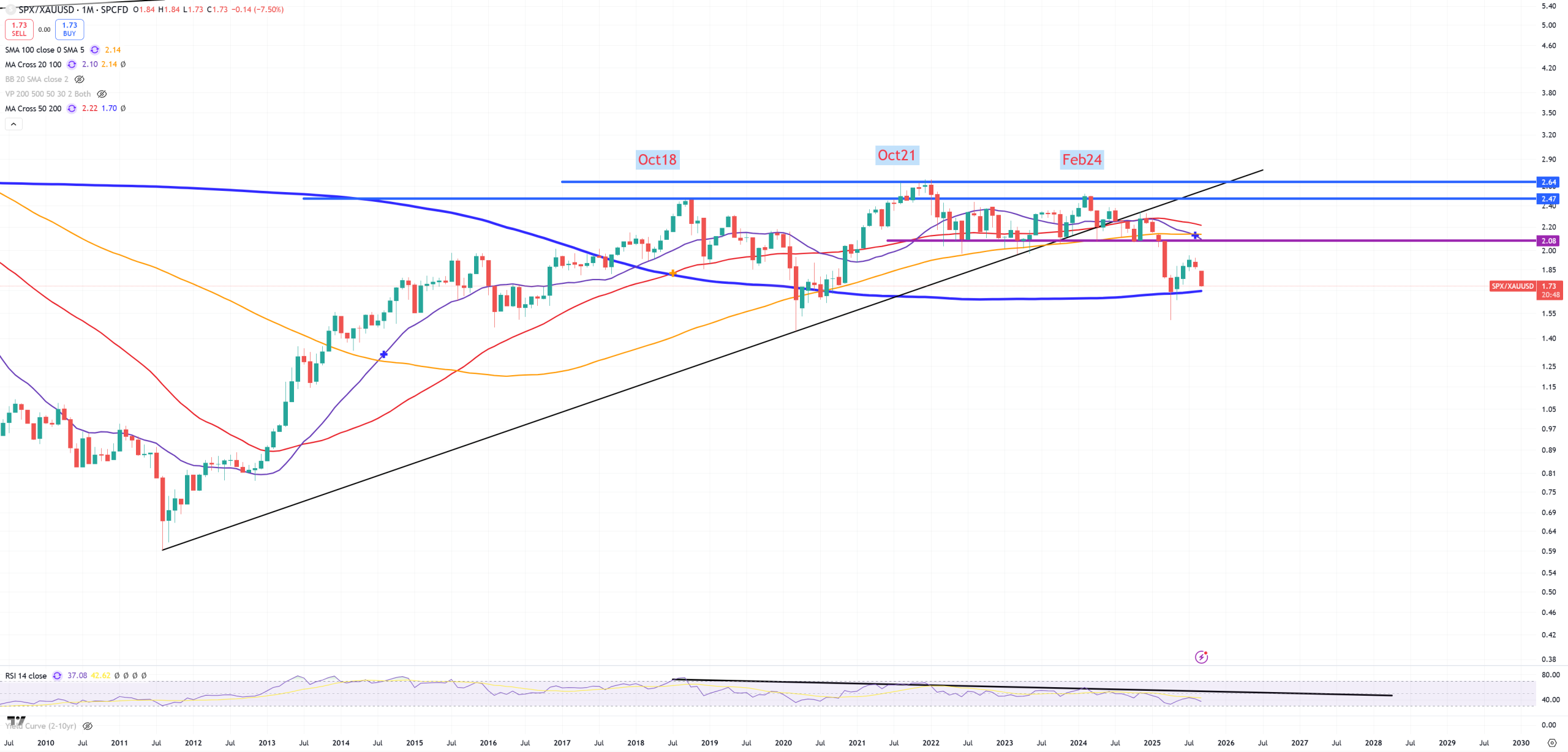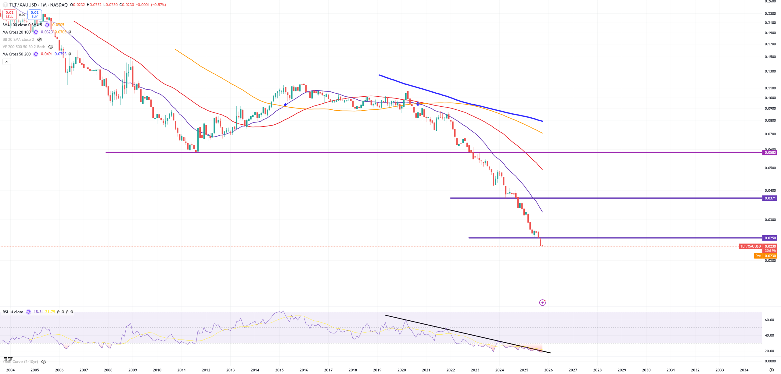 TLT/GOLD and next support GONE, GOLD still > TLT but levels of (M)RSI + trend in (M)RSI will be brutal.
