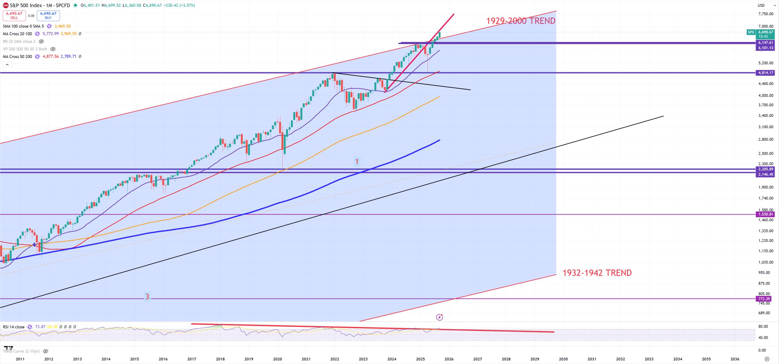 SPX – no doubts here market jumps above 1929-2000 trend, October 2025 level is 6380