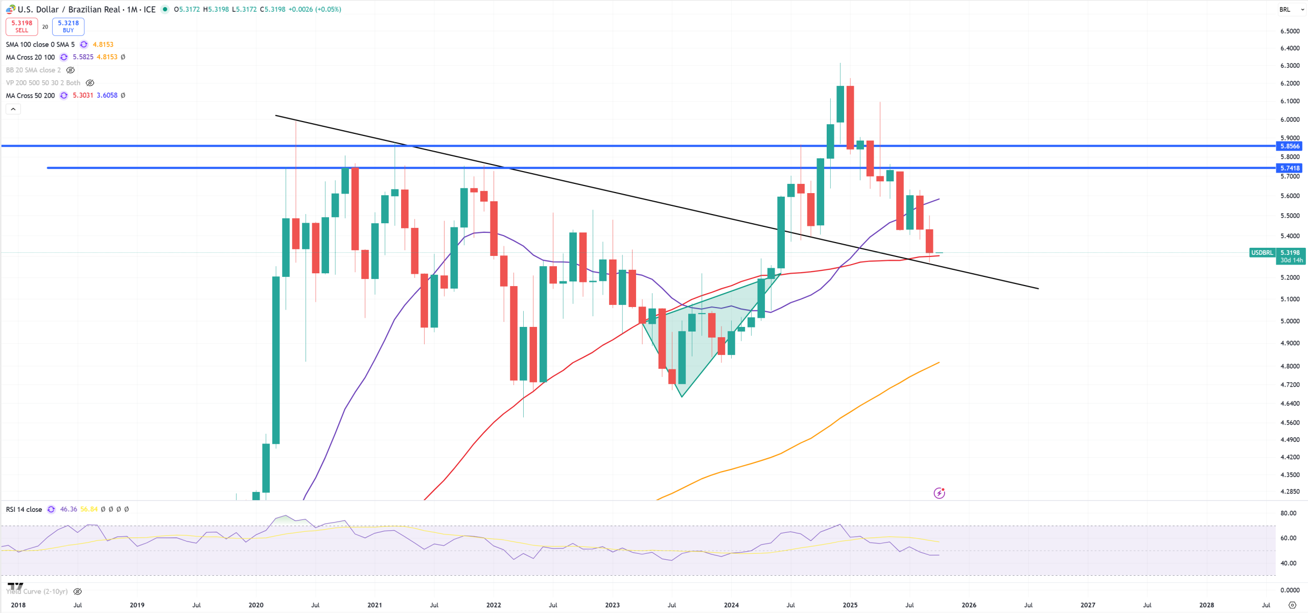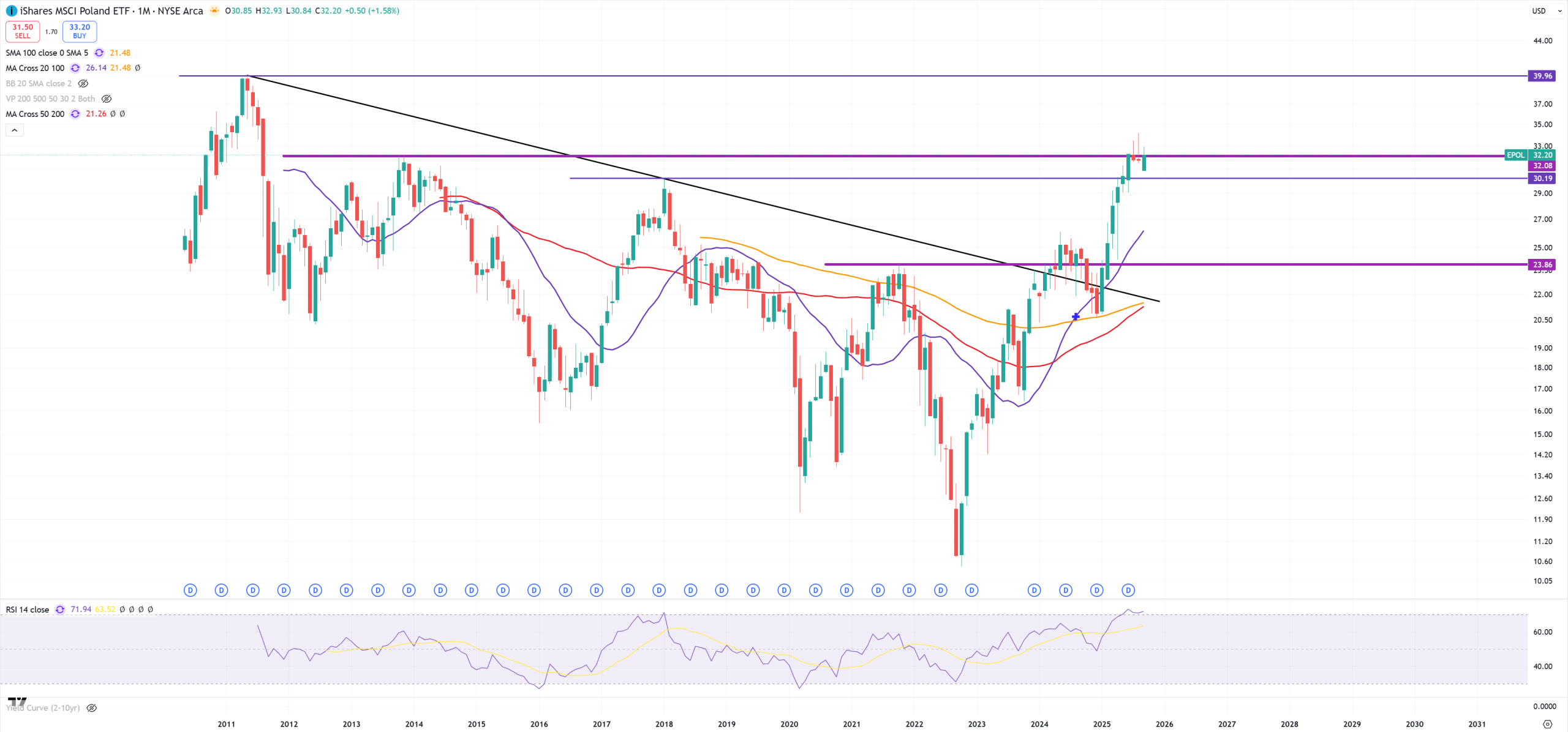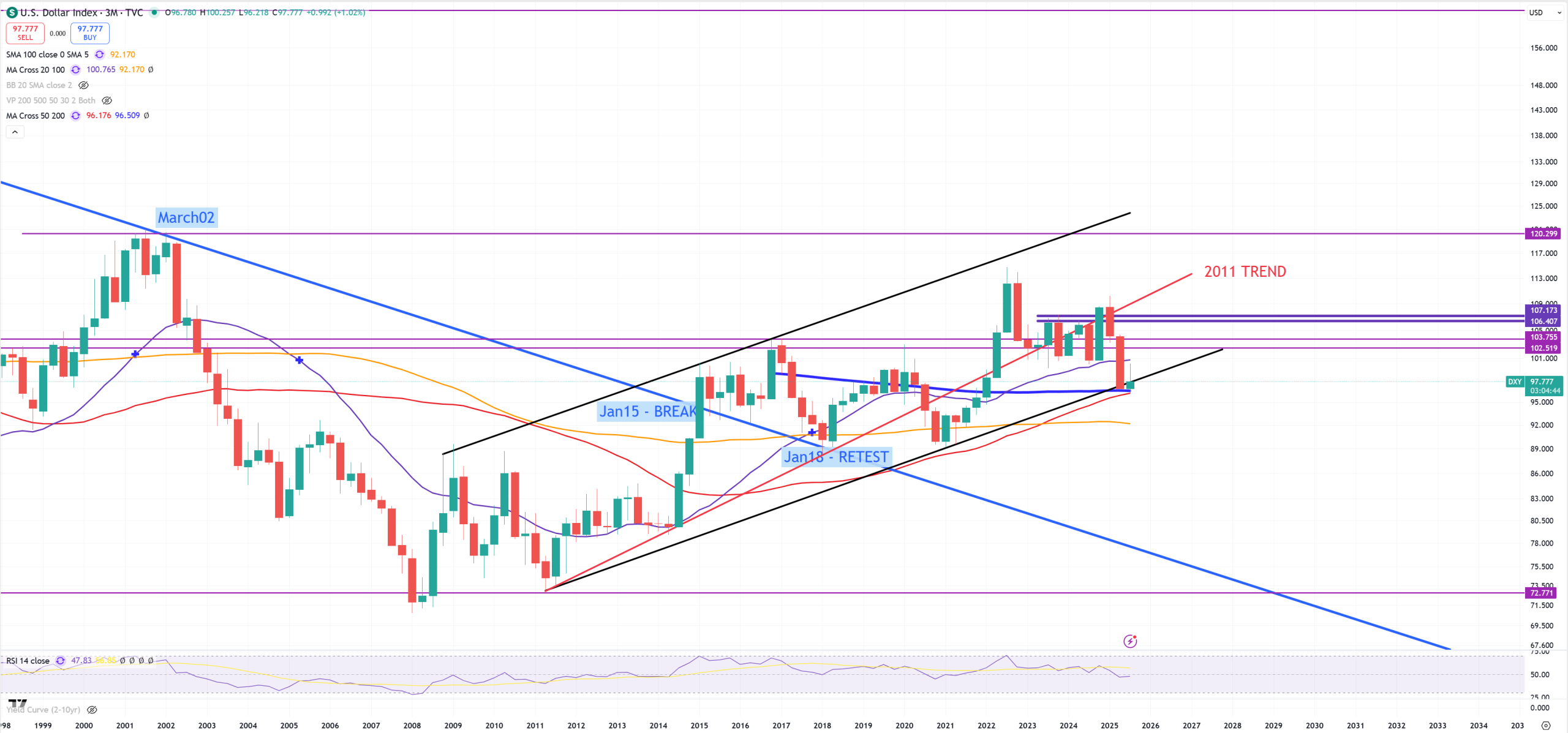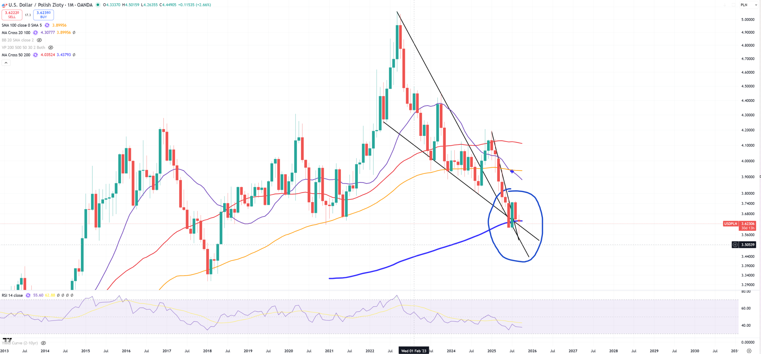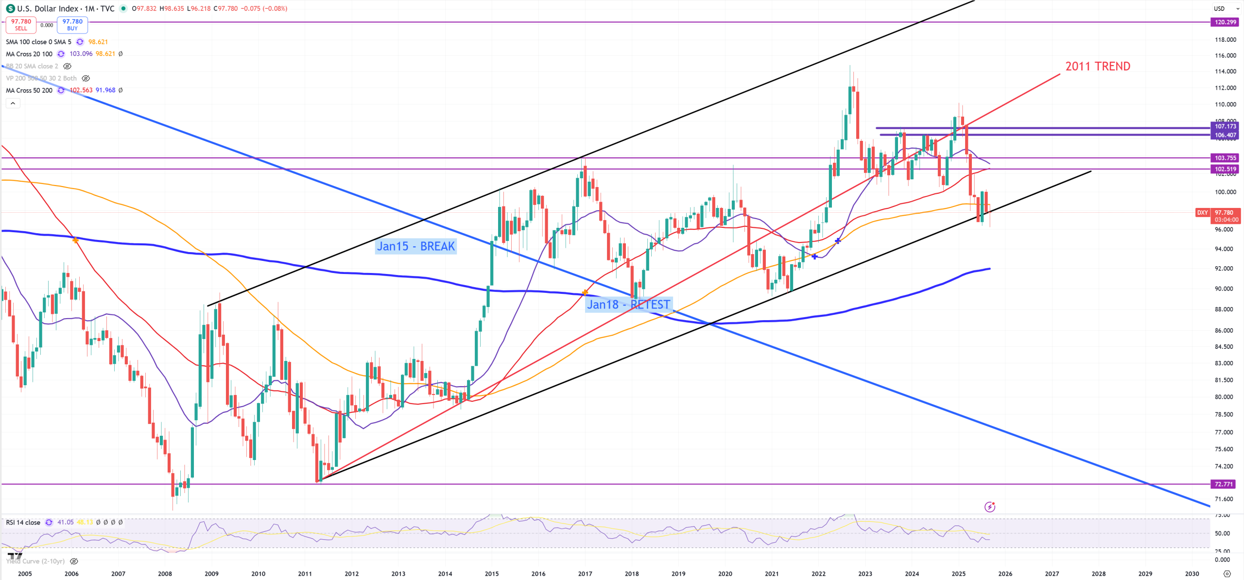 DXY – looking on (3M) we see big level on 96 – this one holds, also around the trend. On (M) you see that (M)MA100 now acts as a resistance.