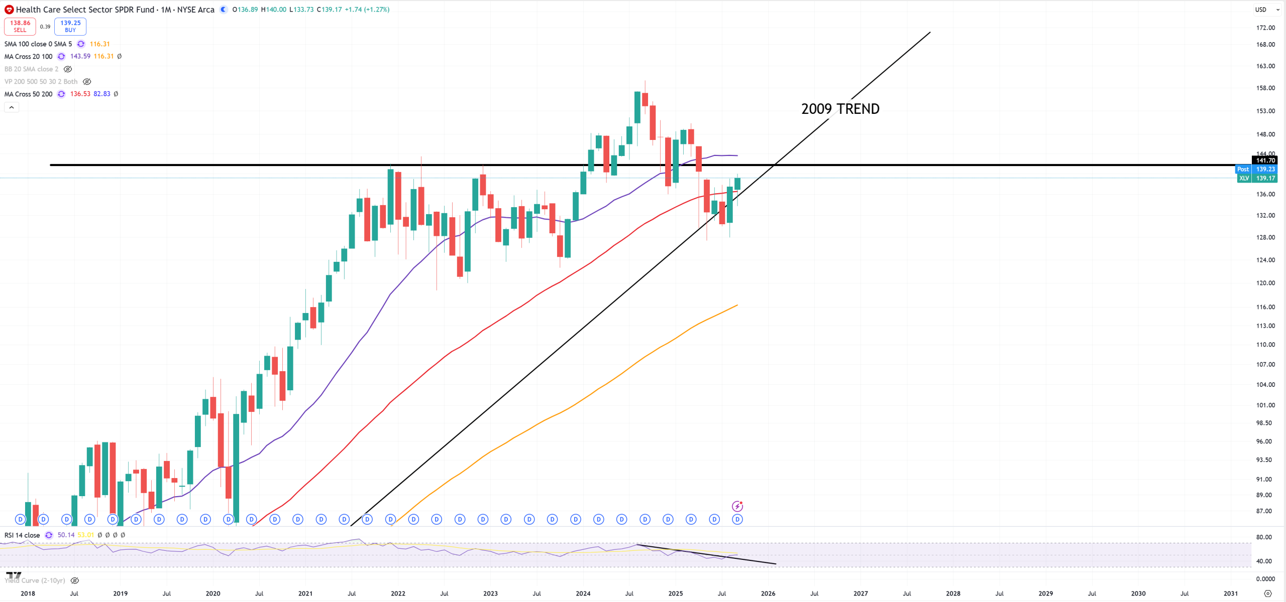 XLV – bulls were fighting and they won here (M)MA50 saved + 2009 trend let’s see for how long, XLV still looks the weakest from all sector ETFs.