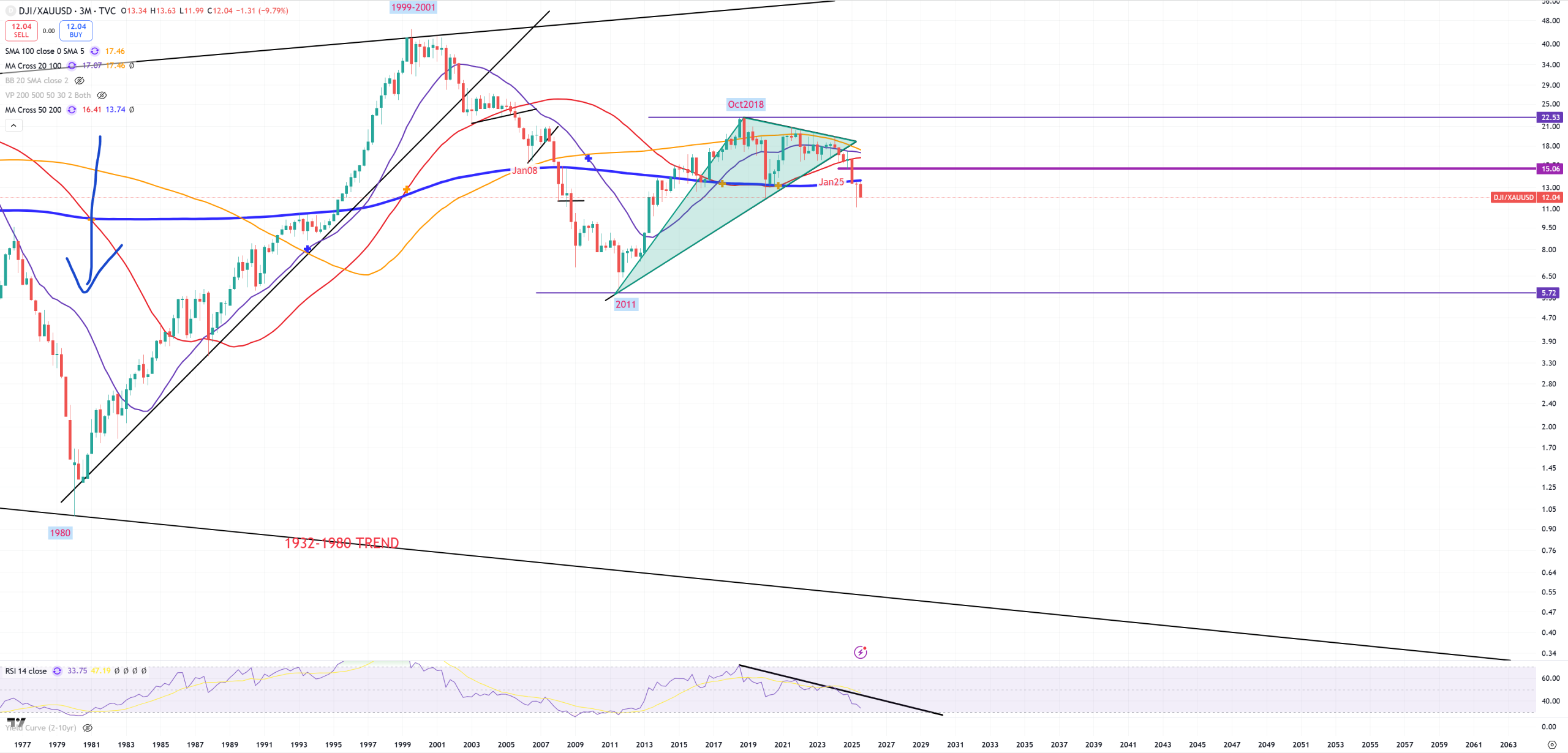 DJI/GOLD – this ratio looks very scarry. Not worth to show on (M) view as everything is broken, but on (3M) view everything is broken too. Last 5 breaks of blue (3M)MA200 : Jan25, Jan08, Jan73, Oct37, Oct31. Peak in Oct2018, lots of macro also peaked pre 2020. My inderpretation DJI/GOLD and SPX/GOLD are showing how economy goes. Down it goes down and up it goes up. It has nothing to do with stocks.