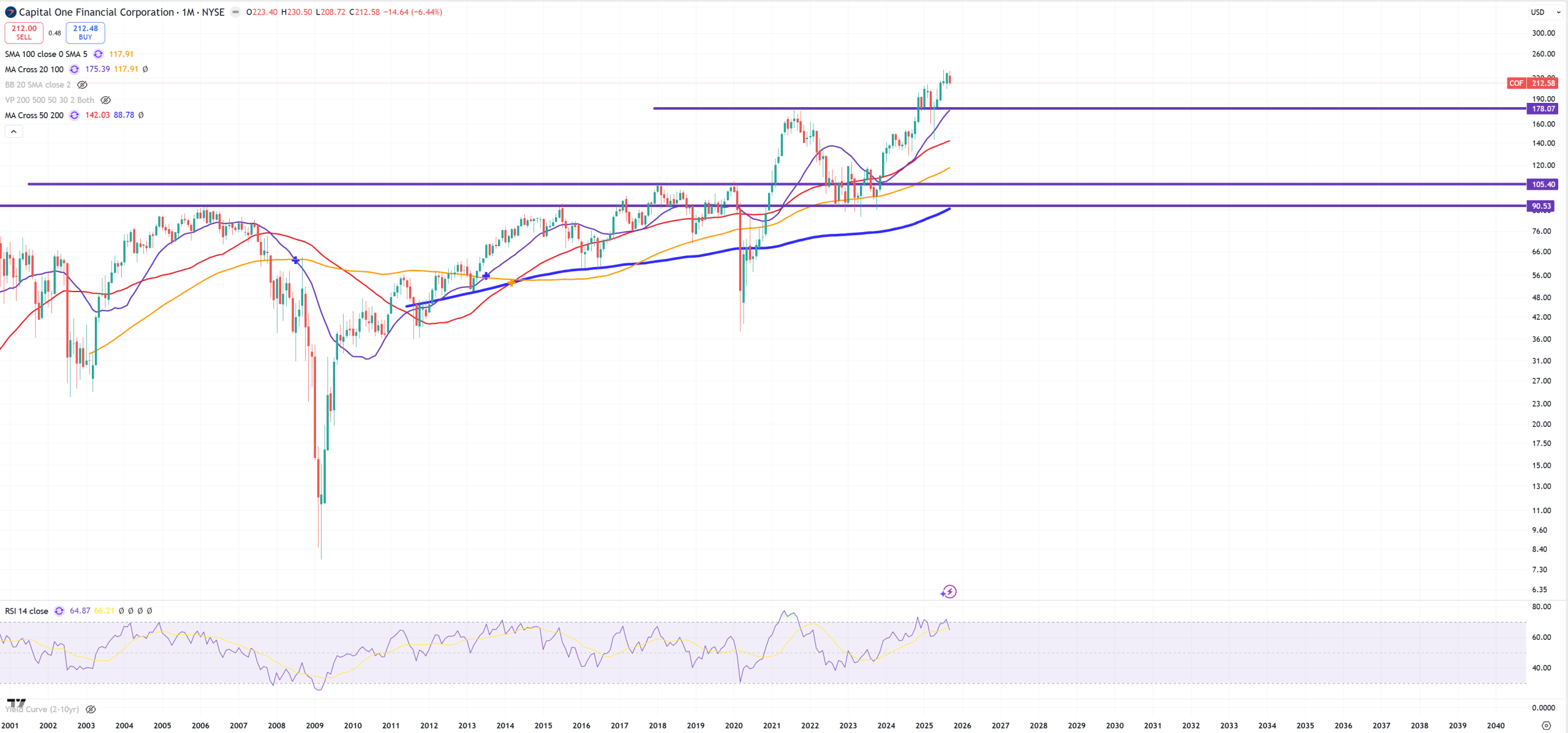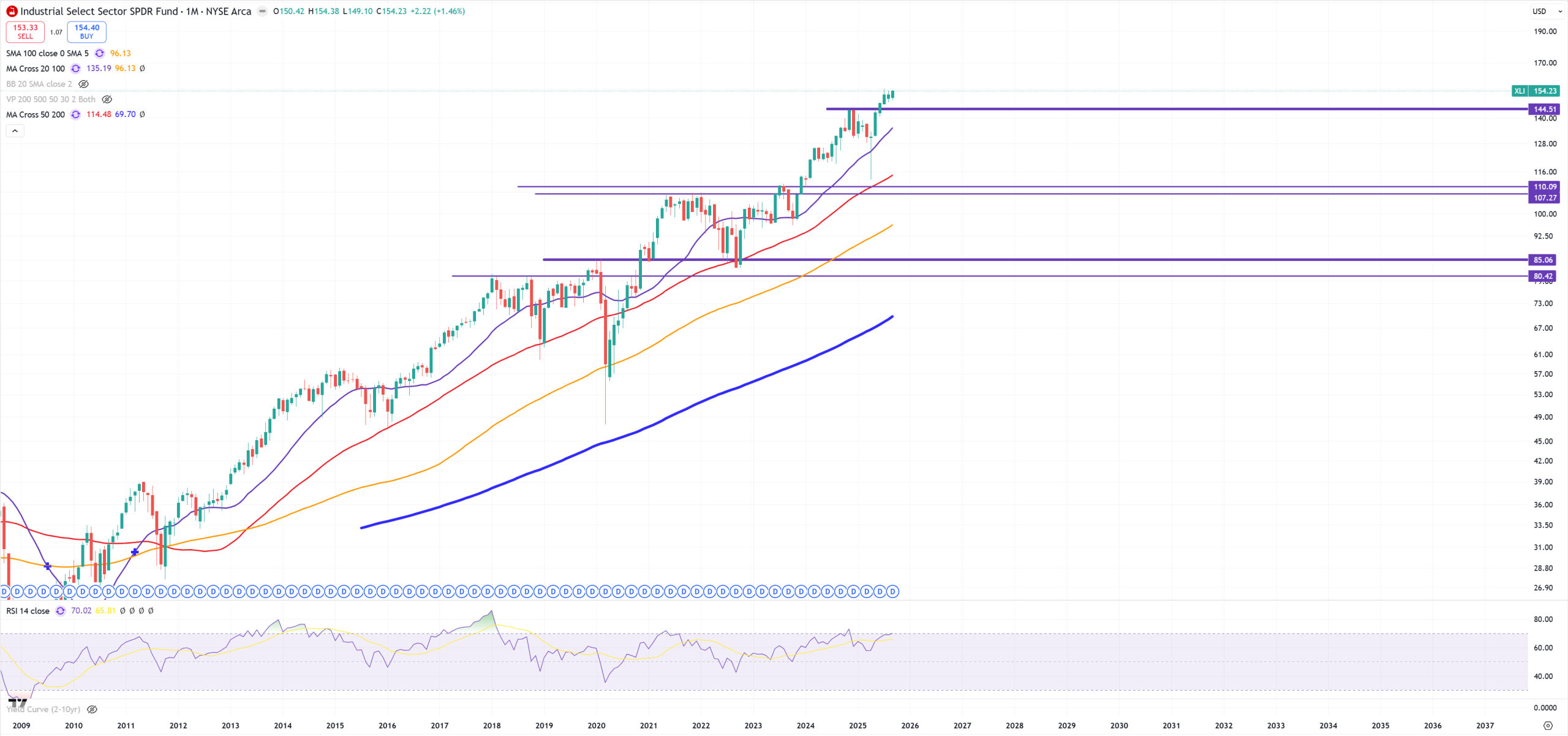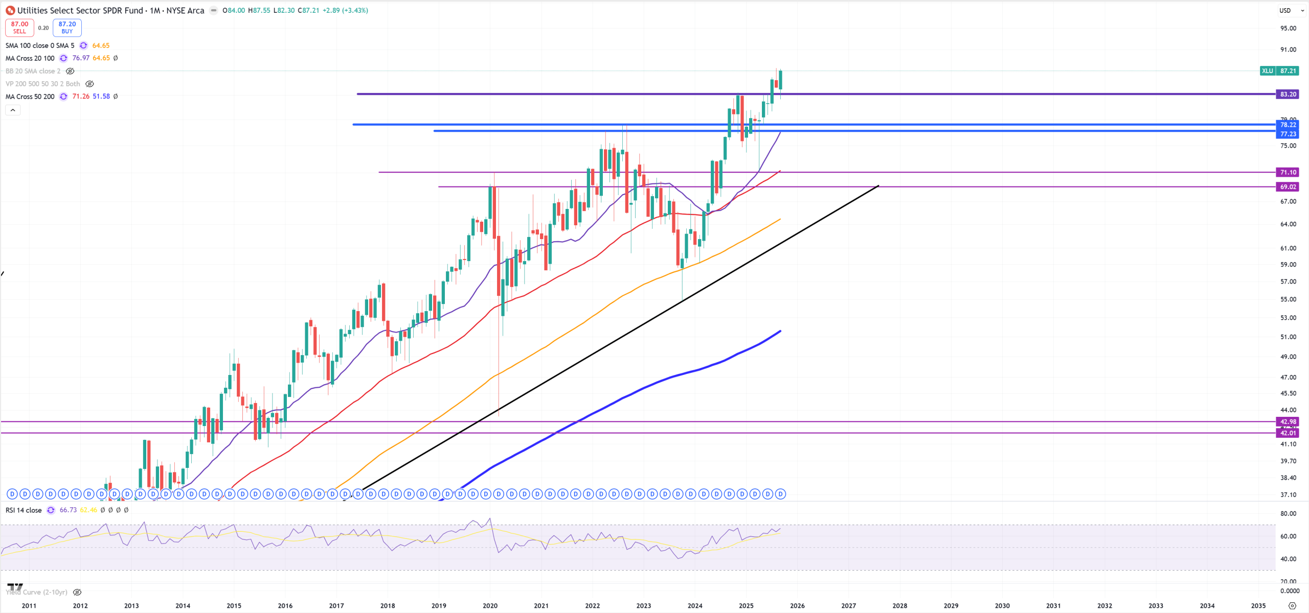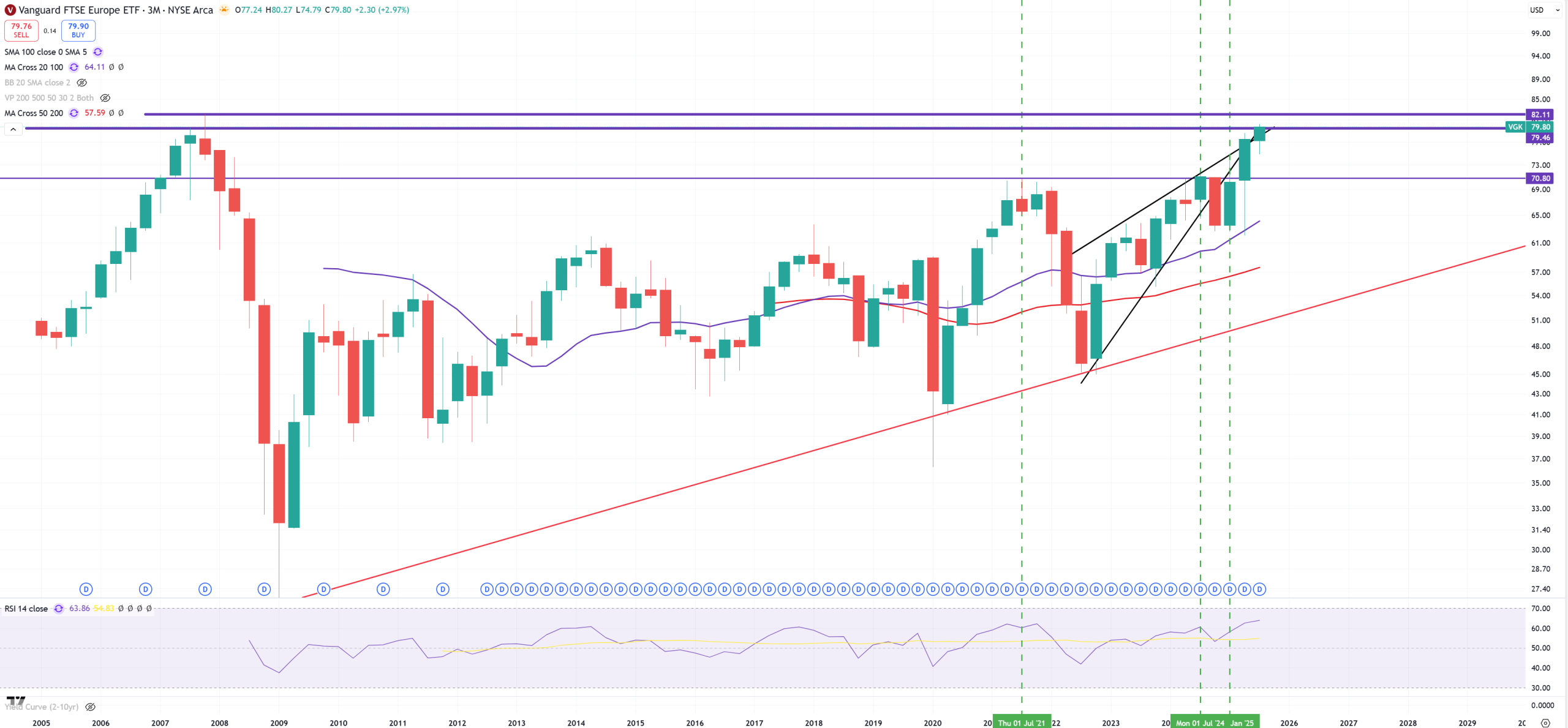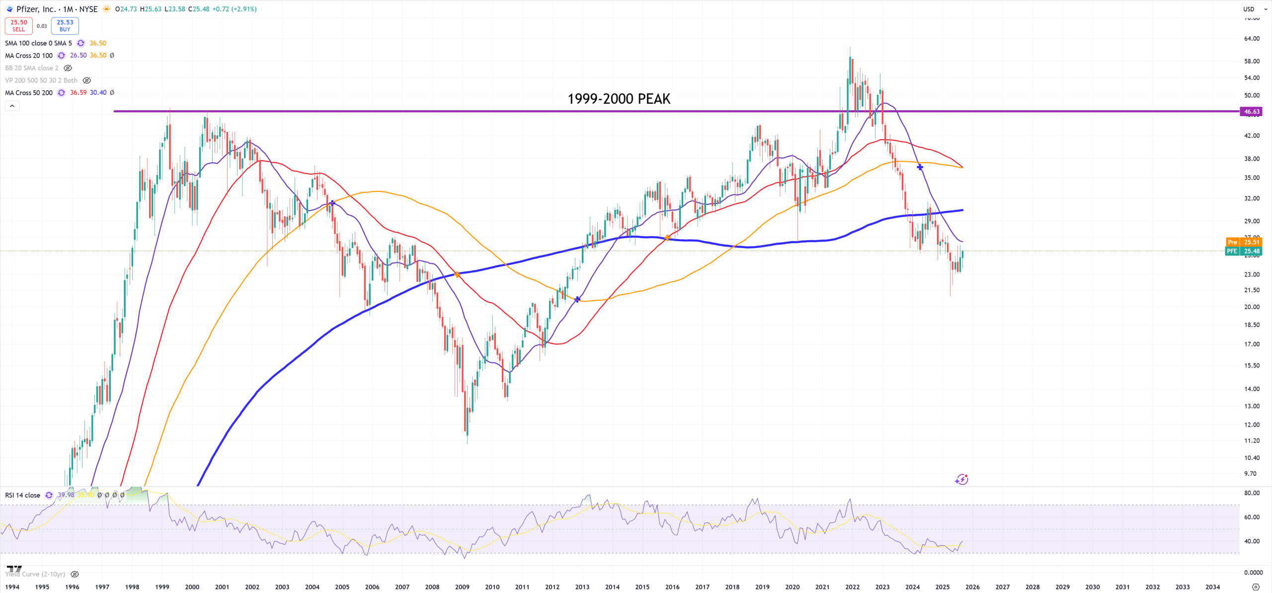 BA – I love Boeing chart because (M)MA200 break was so far always a confirmation of entering into a bear market of the whole economy. It was rescued 3 times so far from blue (M)MA200 : 2020, 2022, 2024/2025. Now (M)MA100 so testing natural bull-trap as yellow (M)MA100 is above red (M)MA50. Lower trend is still 60$. Also no 10Y/3M uninversion no drop.