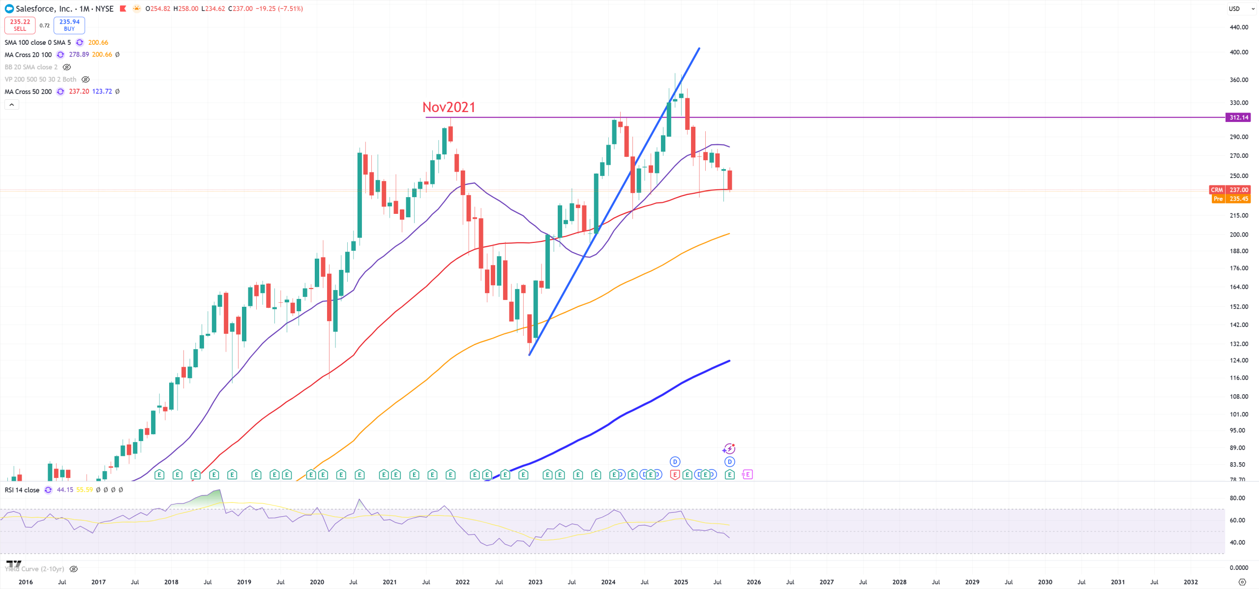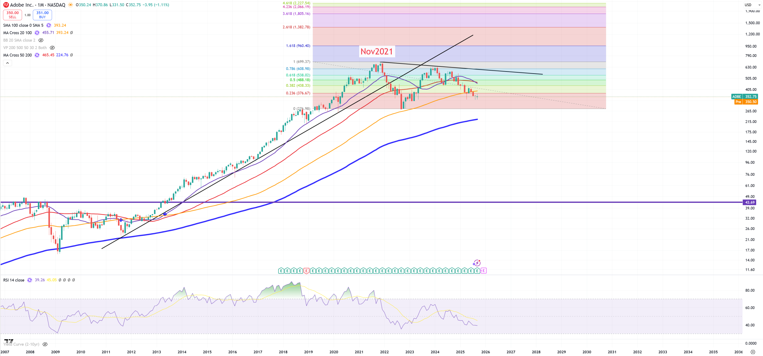 My observation : A lot of stocks peaked around late 2021 beginning 2022. That moment is in many macro peak of the economy and SPX/GOLD peak. Once stocks went down below this level they’re not coming back above it. Some stocks trying heavily to defend this level, some gave up and are -70% lower. Of course TECH+AI+Banks are mostly those stocks that lead everything.