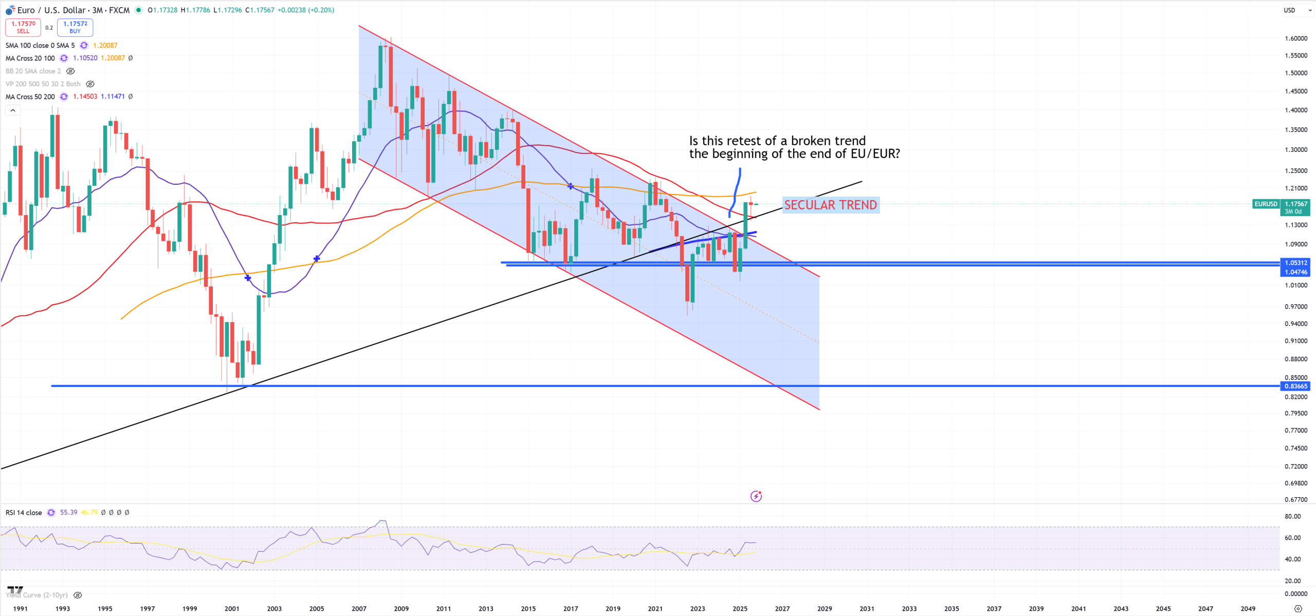 EURUSD – we see (3M) view. 1.15 is now the trend + (3M)MA50. Yellow (3M)MA100 is more or less in the same position as (M)MA200 = 1.20. This move is one of those big suprises for me, as I was expecting retest won’t take secular trend so now it’s 1.15. From the other hand DXY pointed for the lowest retest level = 96.