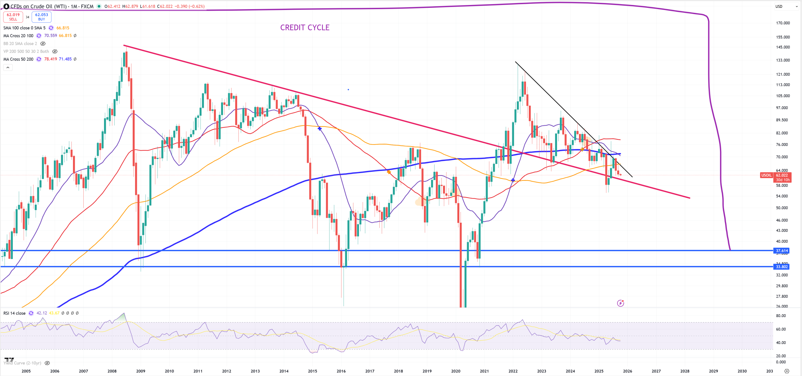 OIL – breaking RED trend line will make 30$ magnet, so far market avoided that.