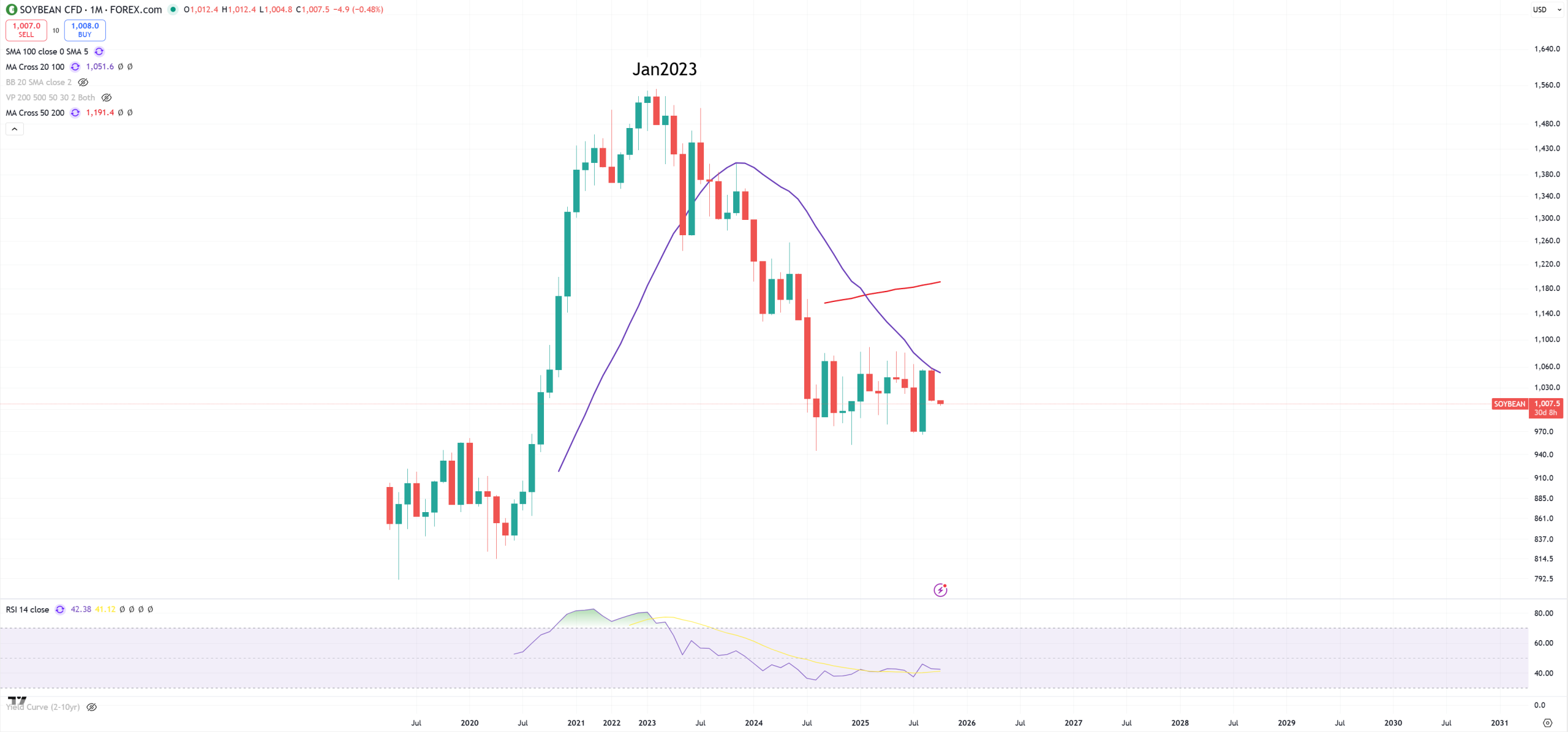 SOYBEAN – peak in Jan 2023 – in general farmers are in troubles.