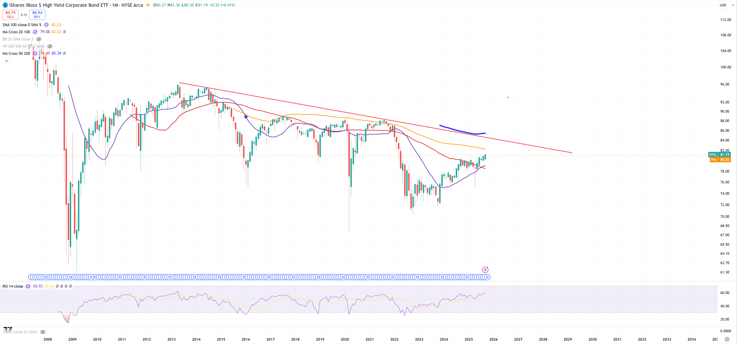 HYG – Junk credit is going higher – this is a break connected with SPX 1929-2000 break trend and MOVE break which will be a bit lower. Is it a permanent break like SPX 1929-2000 trend? Nobody knows.