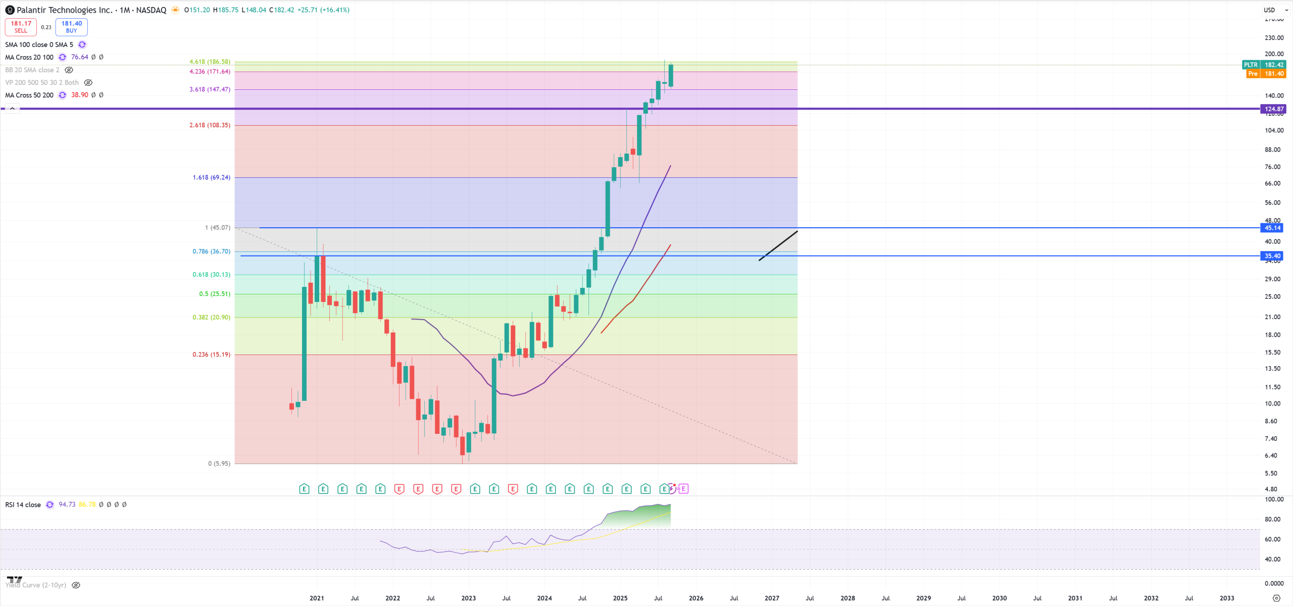 PLTR – The only one company I remind that was SMCI around its peak. Now PLTR has (M)RSI around 95-96 and distance to (M)MA50 over -80% and that’s like double-tulip-bubble.