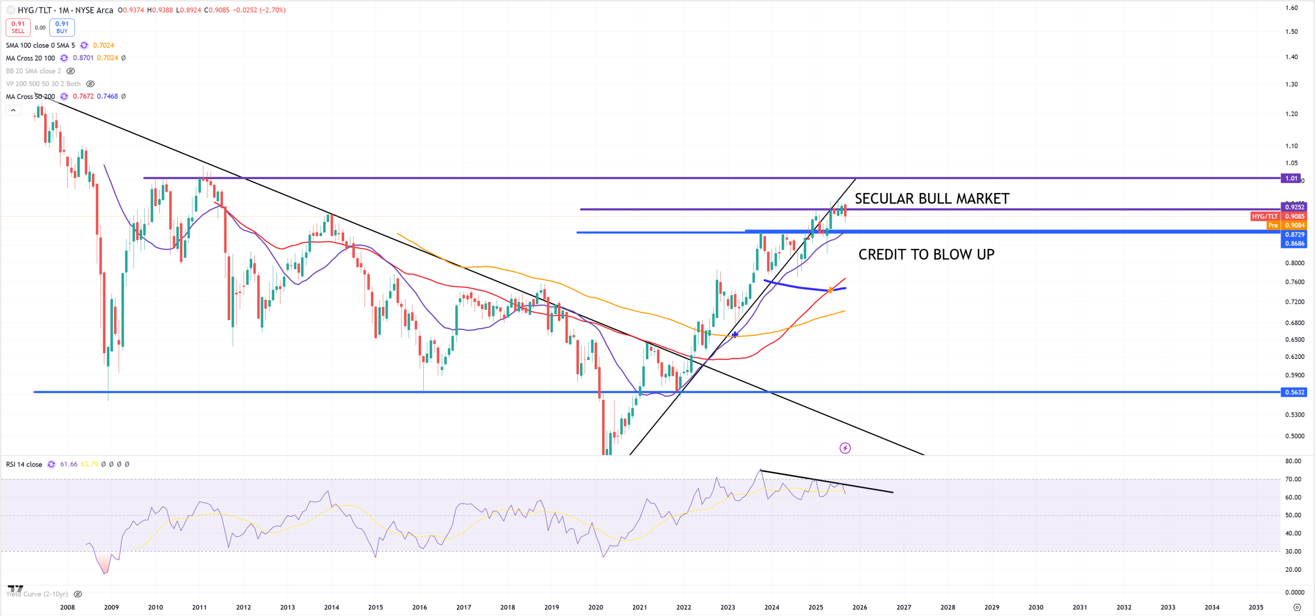 HYG/TLT – I like this indicator pointing for a credit problem once it starts going lower.