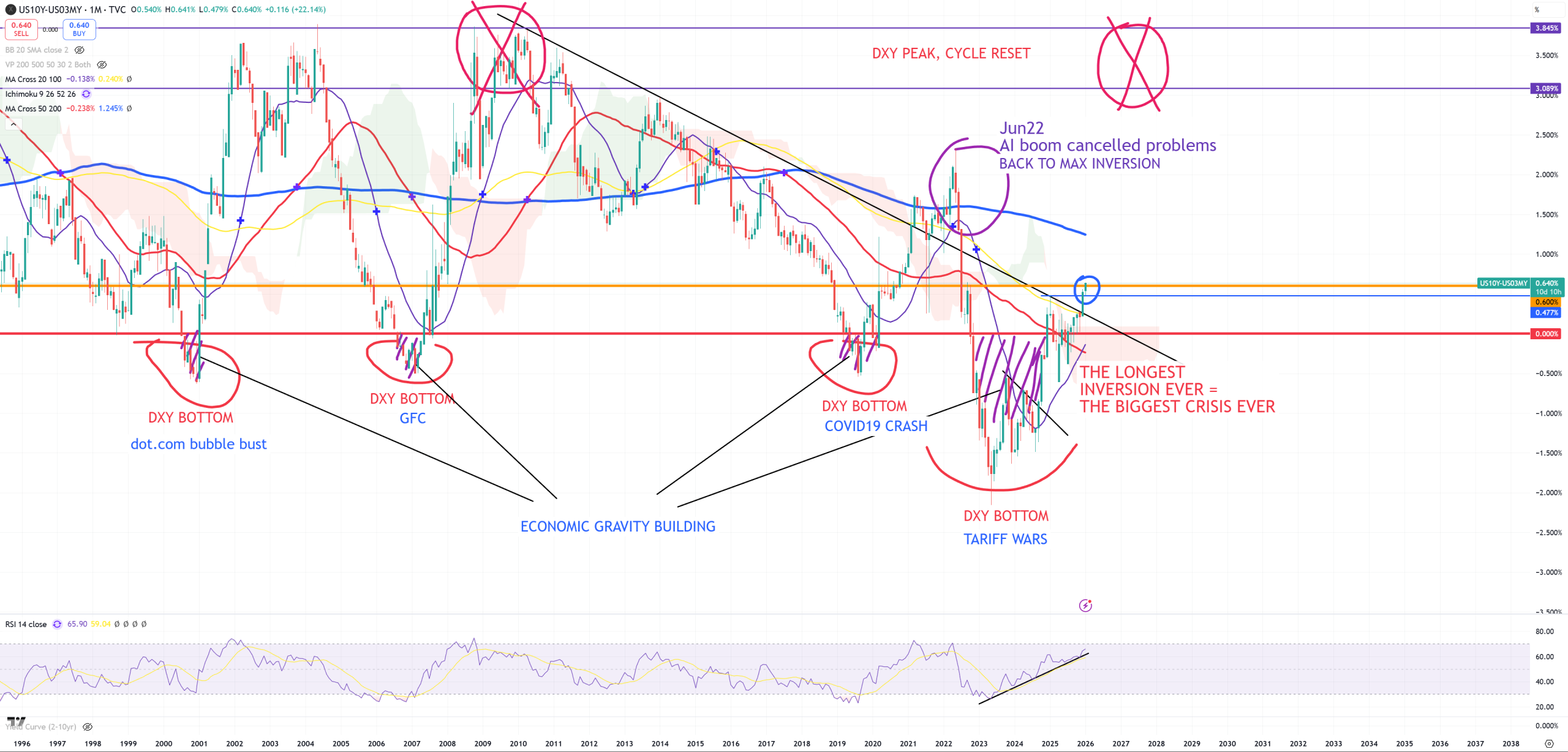 10y/3m closes according to my model stock market.Together with US03MY breaking (M)MA50, breaking +60bps after inversion is a done deal unless this time is different?