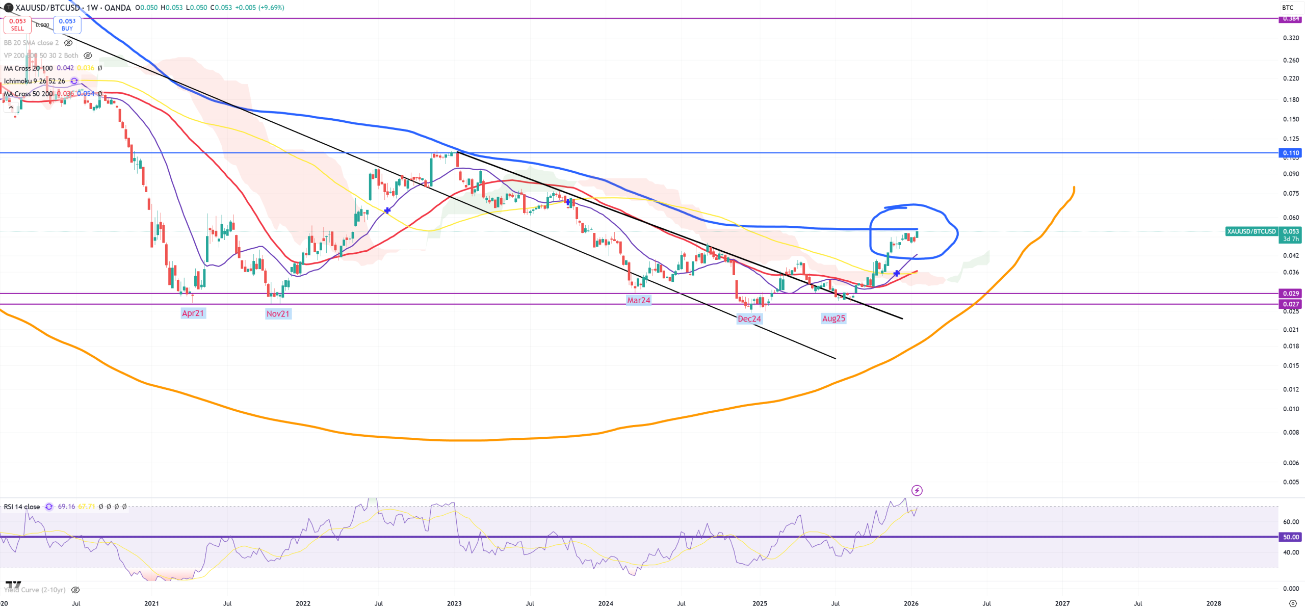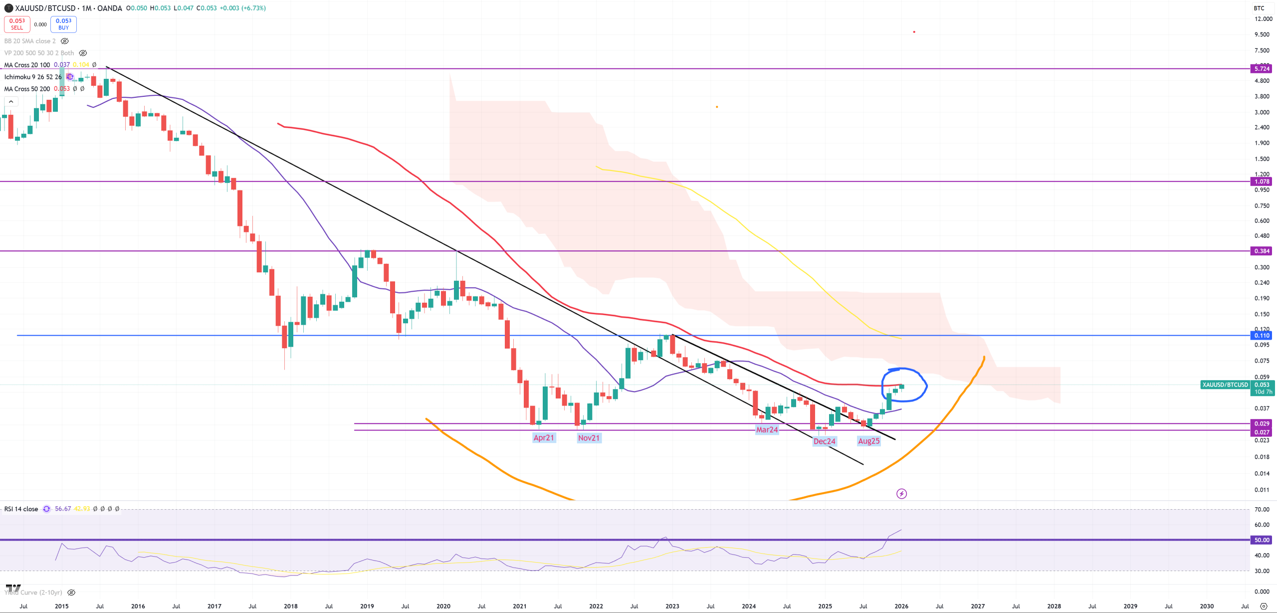 BTC/GOLD and key levels (W)MA200 & (M)MA50