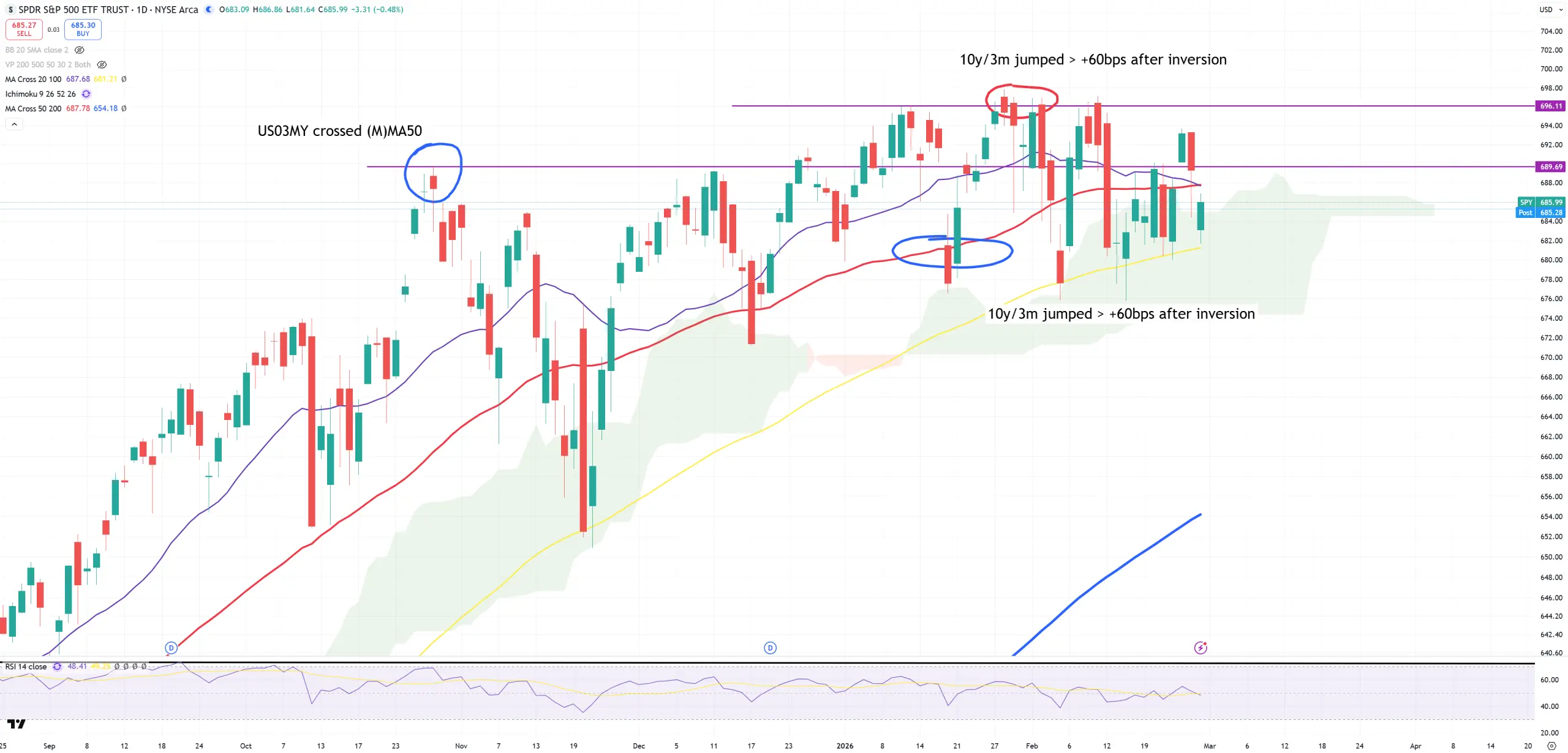 SPY – so let’s check this technical pattern. It’s just (D) to get an idea if we end below October/November 2025 peak. Those people who don’t remember – search for “Mastering technical turn of the market” on my blog