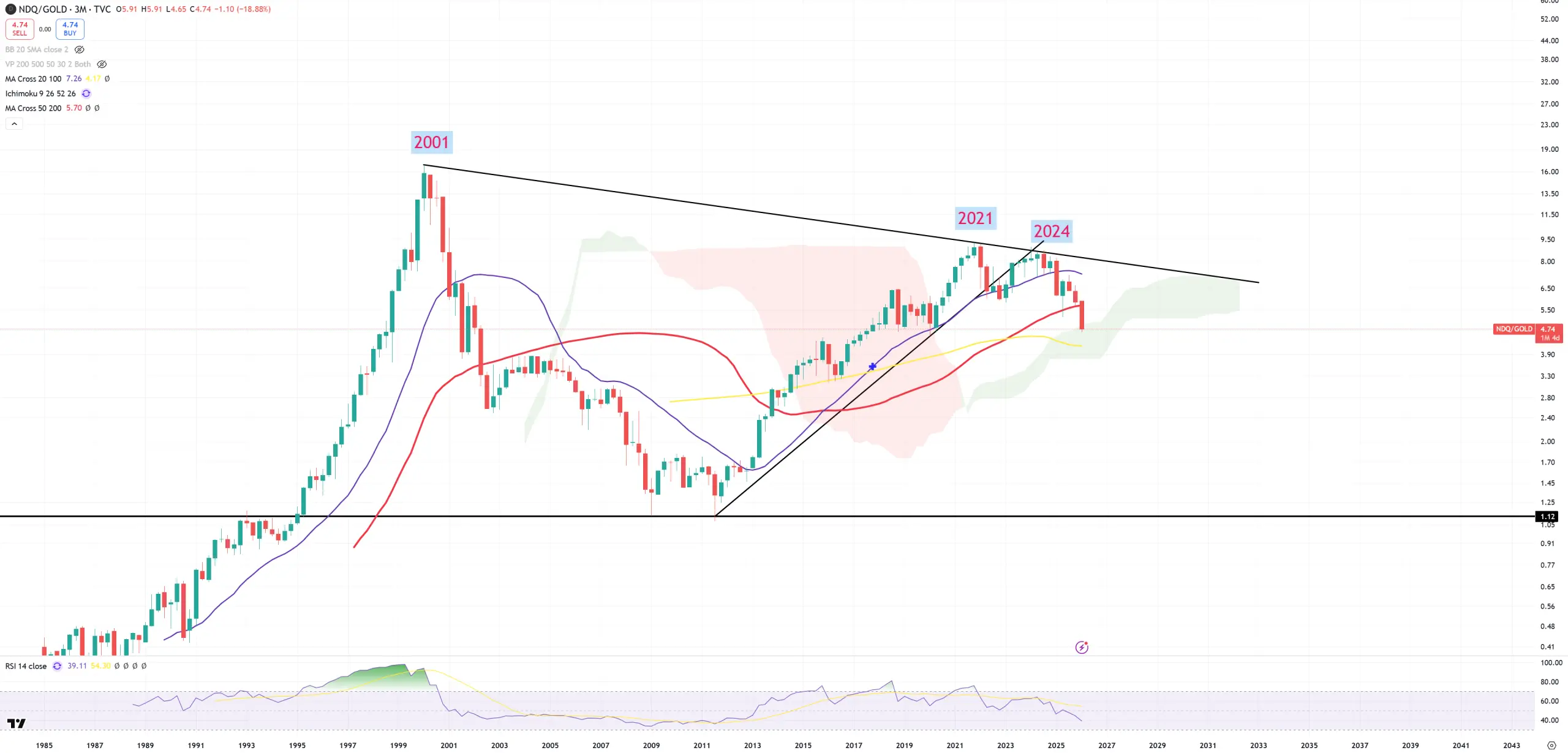 NDQ/GOLD – 3rd indicator, but not really important. Peak in 4Q21, lower peak 1Q/2Q24 and went down. Support ratio is around 1.00 and that’s IMO where we are going. There’s no even blue (3M)MA200 here as it’s of course (3M) view, but we see even red (3M)MA50 is gone (still March is needed to close (3M) candle). Companies like Adobe