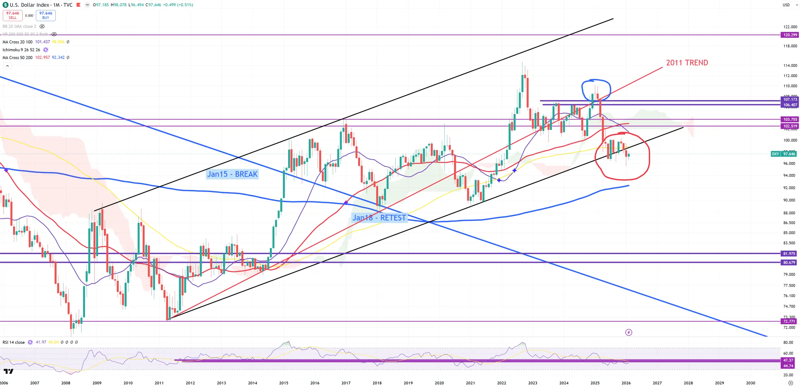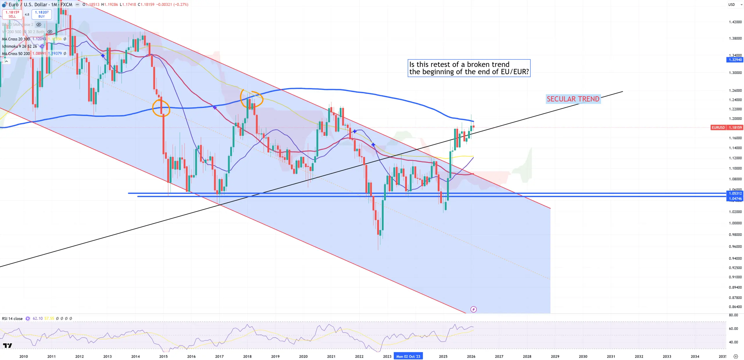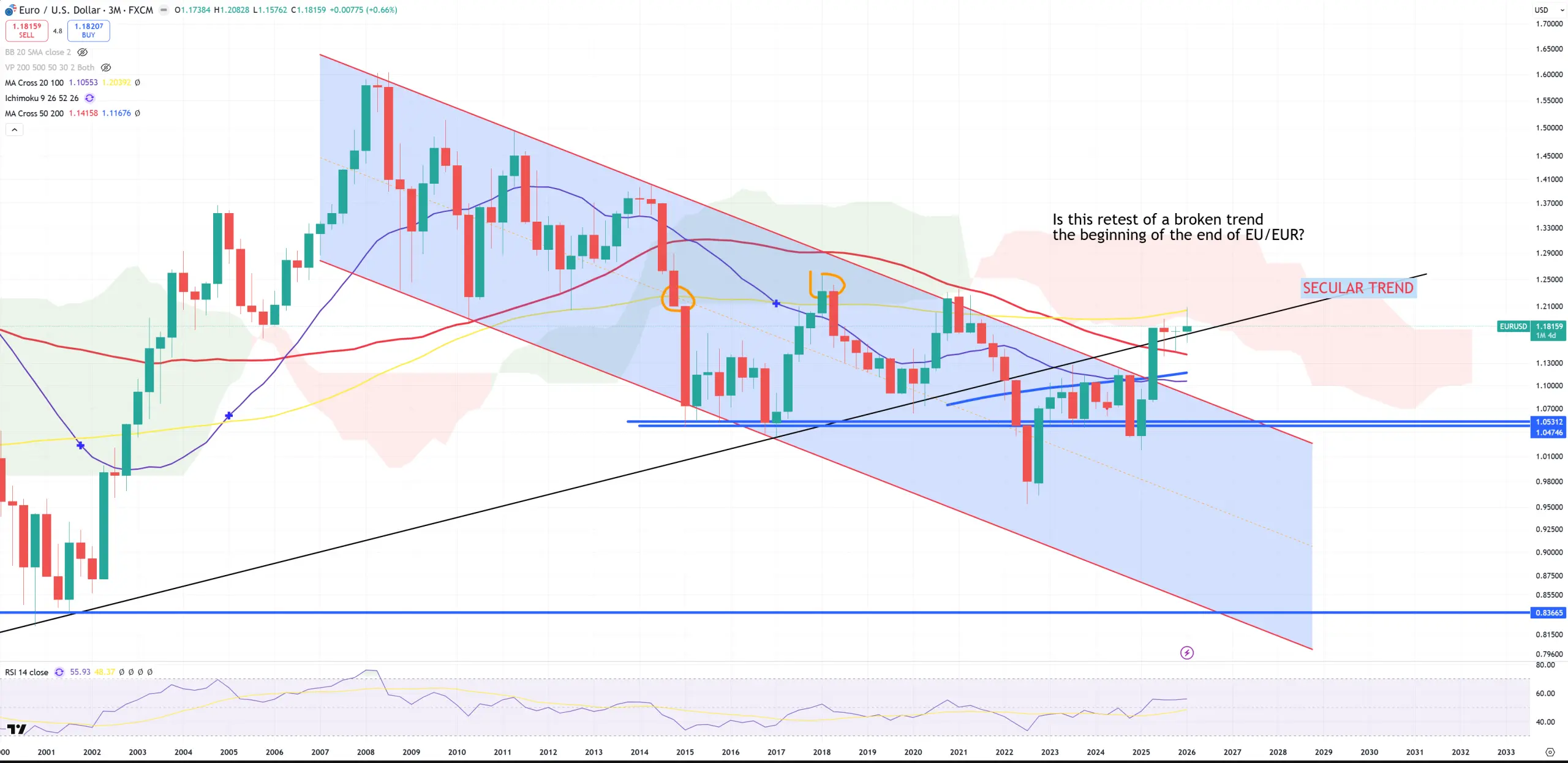 EURUSD – because EURUSD is over 50% of DXY it also hit last border which is (M)MA200 and (3M)MA100