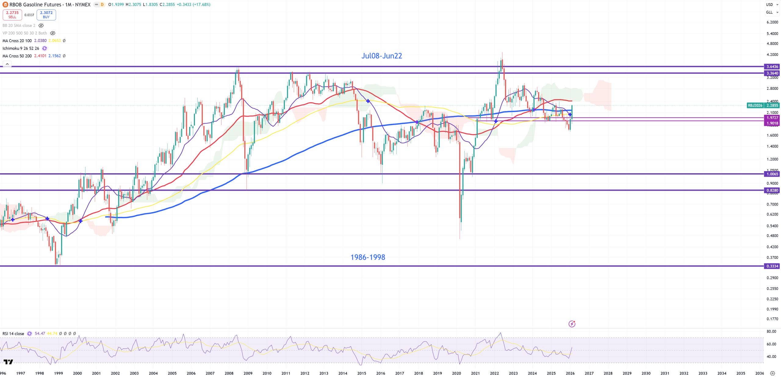 RBOB – Gasoline – that was a false break below this 1.80 so the path to 0.8 is stopped. Same as oil.