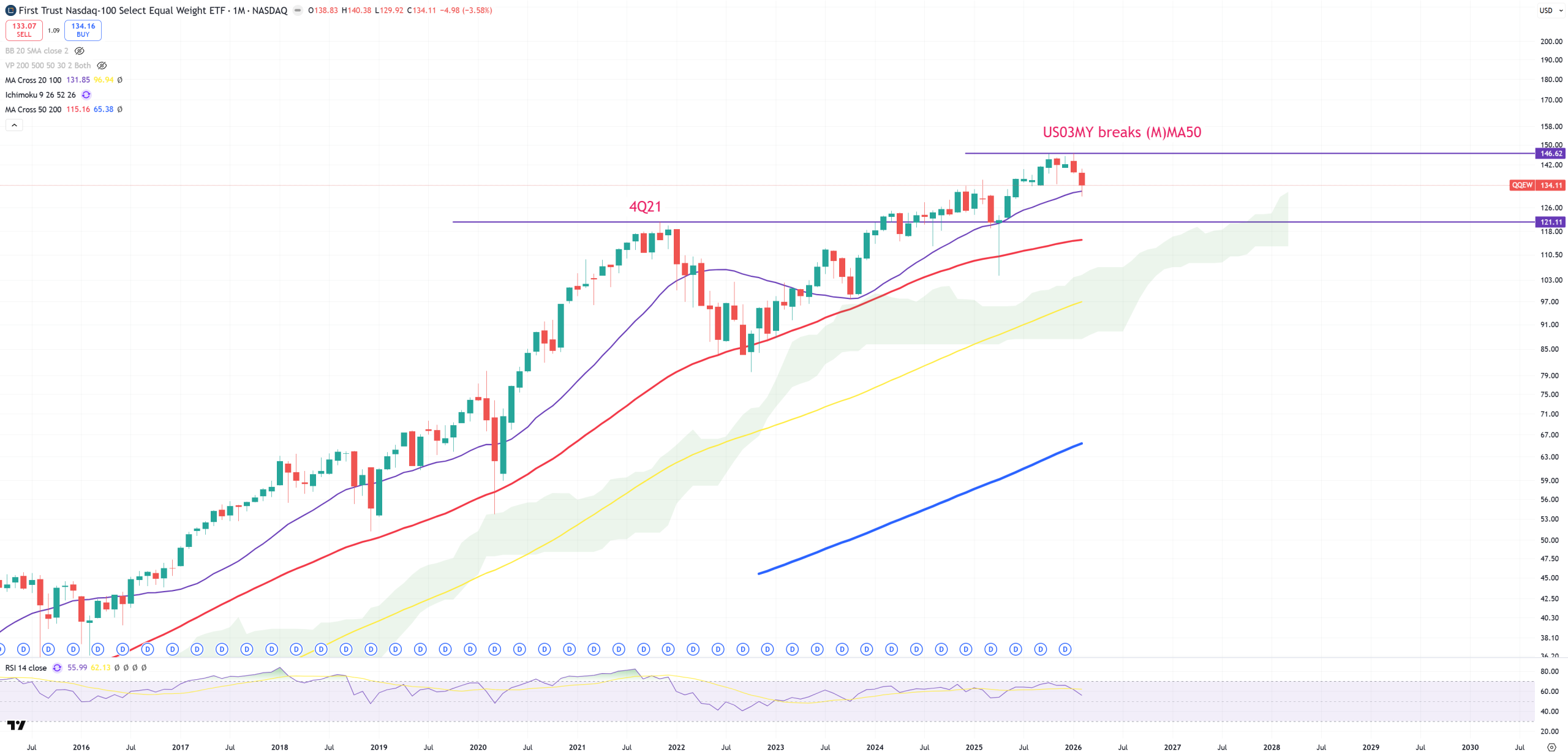QQEW – Nasdaq Equal Weight – we also see a very similar pattern to NVDA