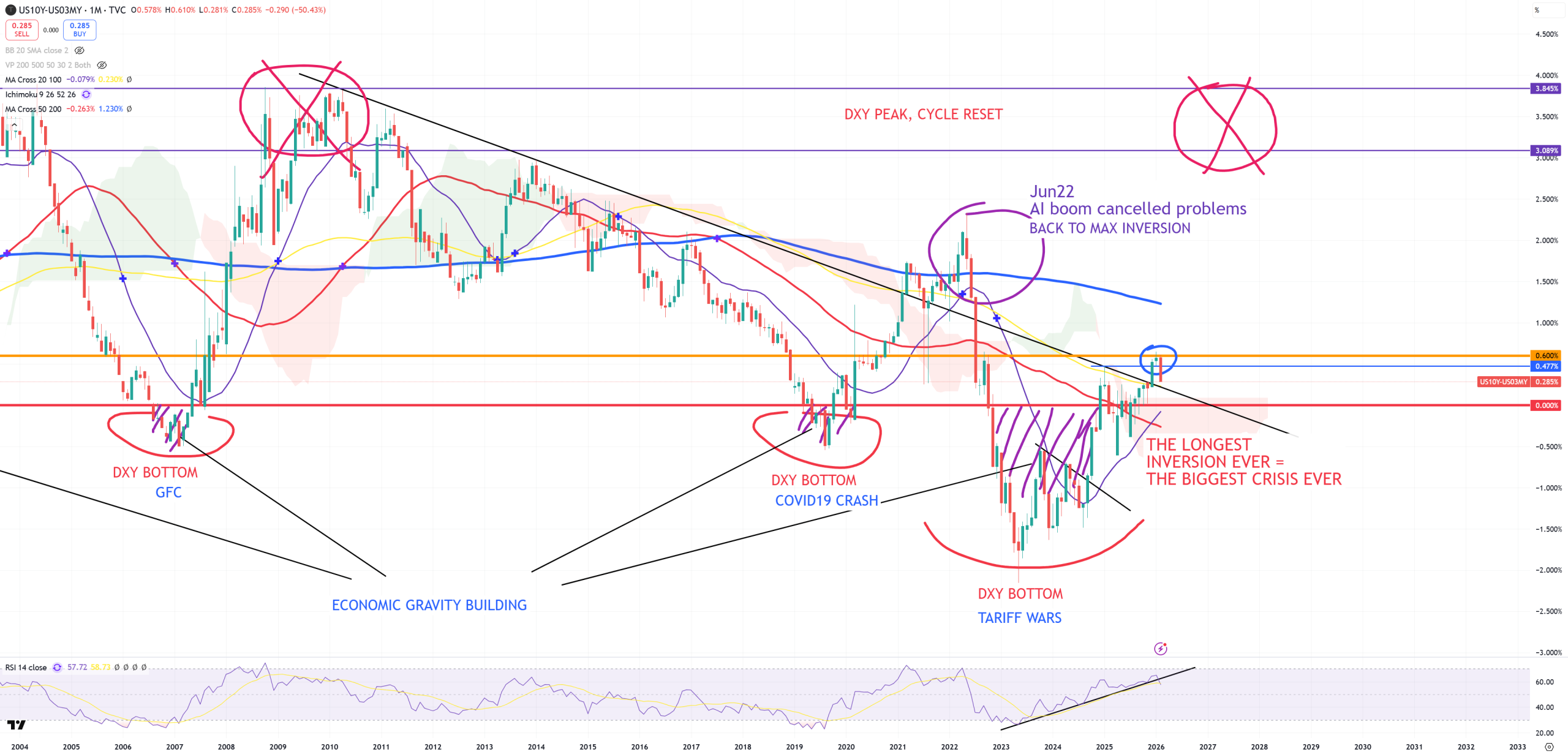 US03MY – so main indicator of topping indexes. Once it broke (M)MA50 it’s mostly game over for stocks. So that’s our October/November 2025 moment.