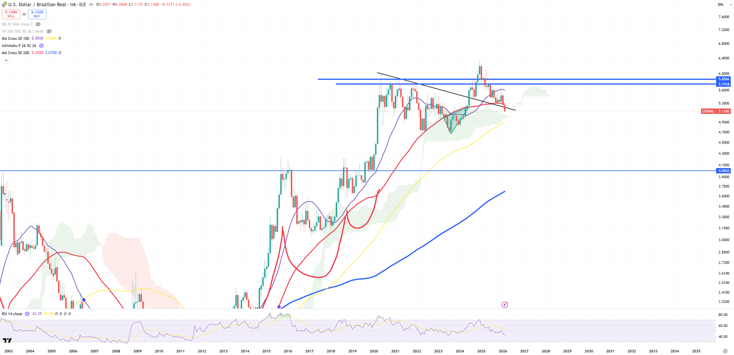 USDBRL – now it’s below (M)MA50, but black trend is also important. Big break or that’s just retest with a bear trap here?