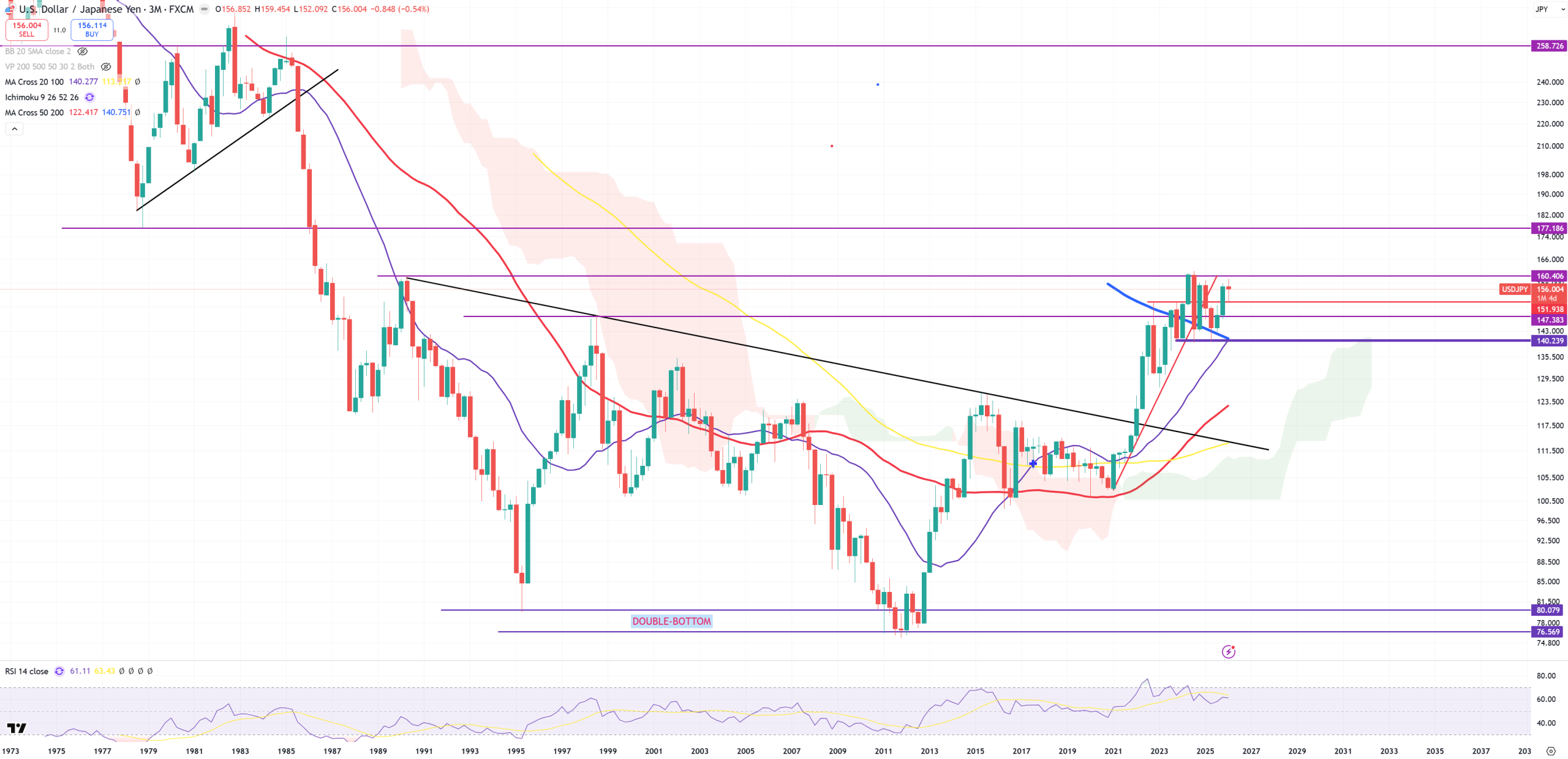 USDJPY – it can go to 300 or it can go to 110. No idea. Range 140-160 is totally neutral. This is 3M view to get a better view
