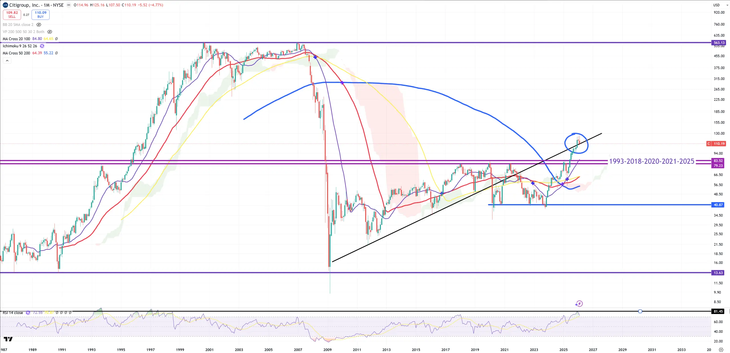 C – that trend is the last possible moment for C to consider last move as a … now what bear market rally with new ATHs? That doesn’t make any sense, but anyway this level is now important if we start March 2026 from rejecting it :