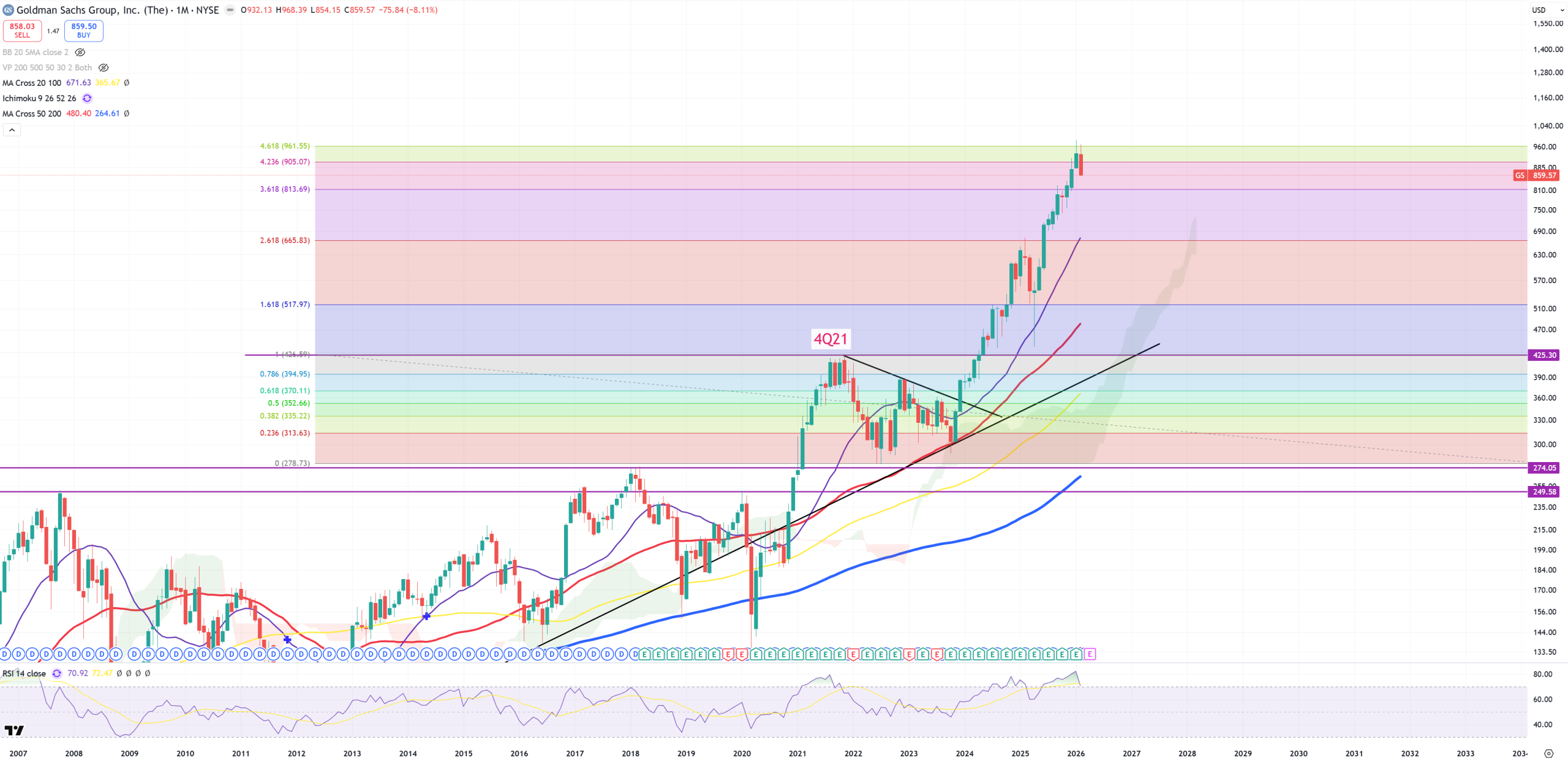 GS – I won’t share charts of MS/JPM because they are in a parabolic move up without any meaningful technical pattern except last FIBO level on 2021 correction measure. This sign is not really important.
