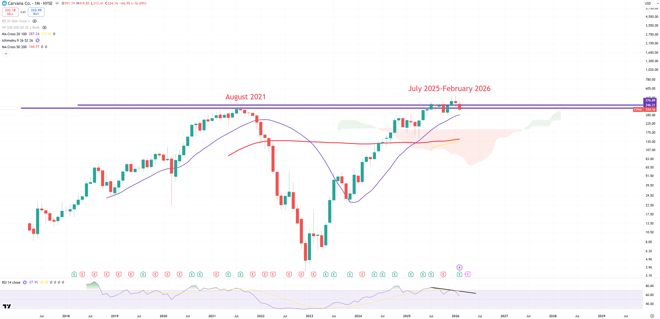 CVNA – here we have perfect double-top