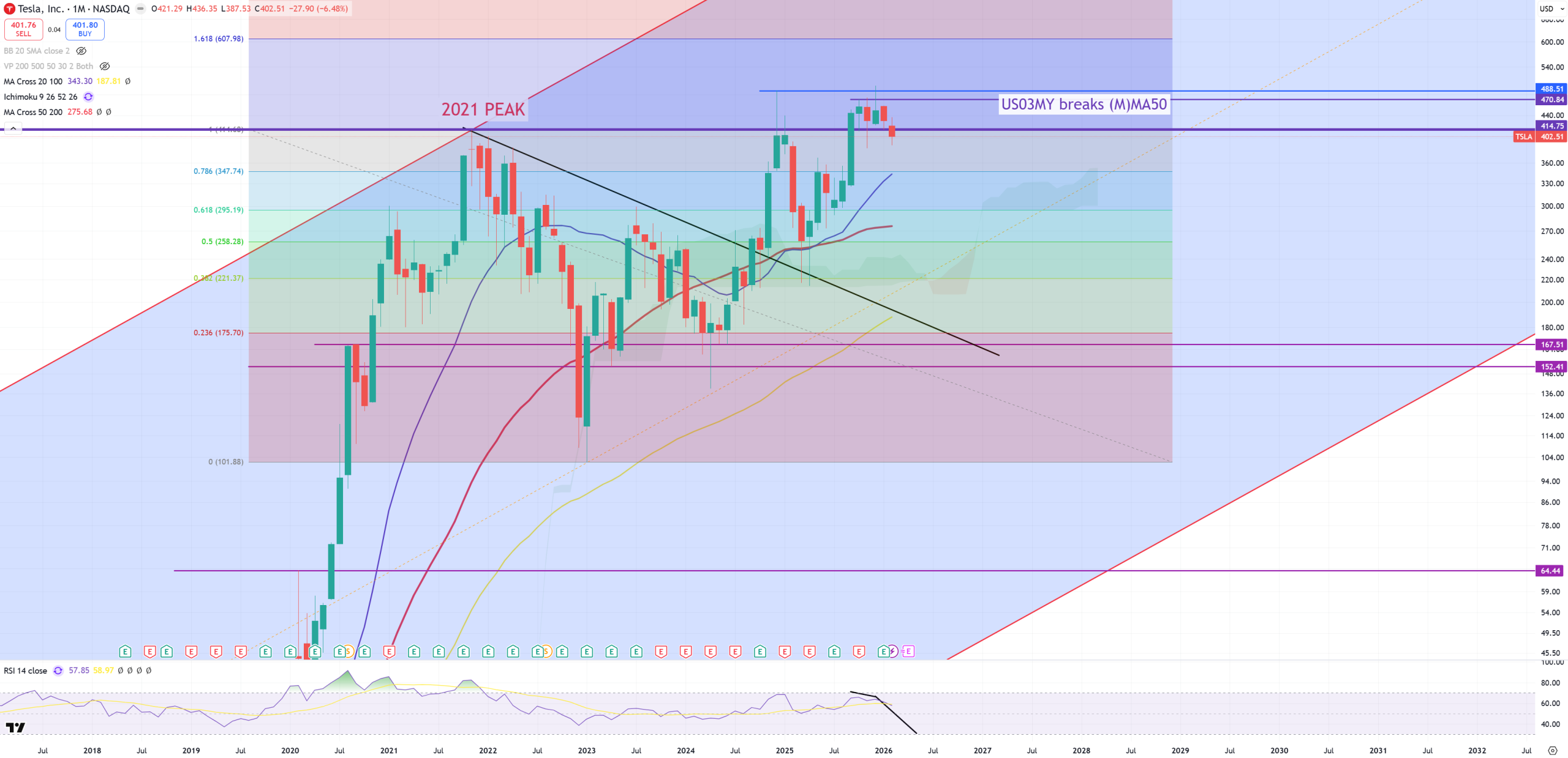 TSLA – now below 2021 peak.