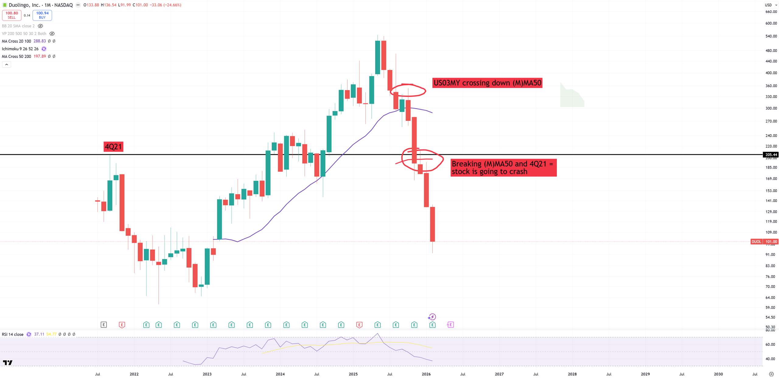 QQQ – Nasdaq 100 looks a bit different. 4Q21 peak is almost 36% lower than 637$ the moment US03MY crossed down (M)MA50. Mag7 bubble is SOOOOOOOOOOOO HUGEEEEEEEEEEE.