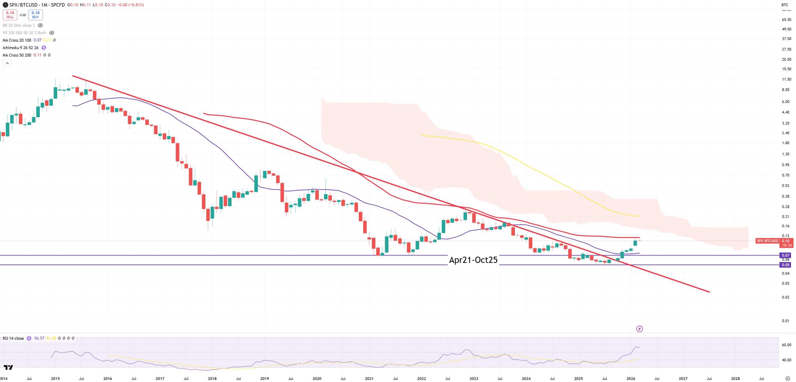 SPX/BTC – BTC now underpeforms even SPX, but (M)MA50 has not broken.
