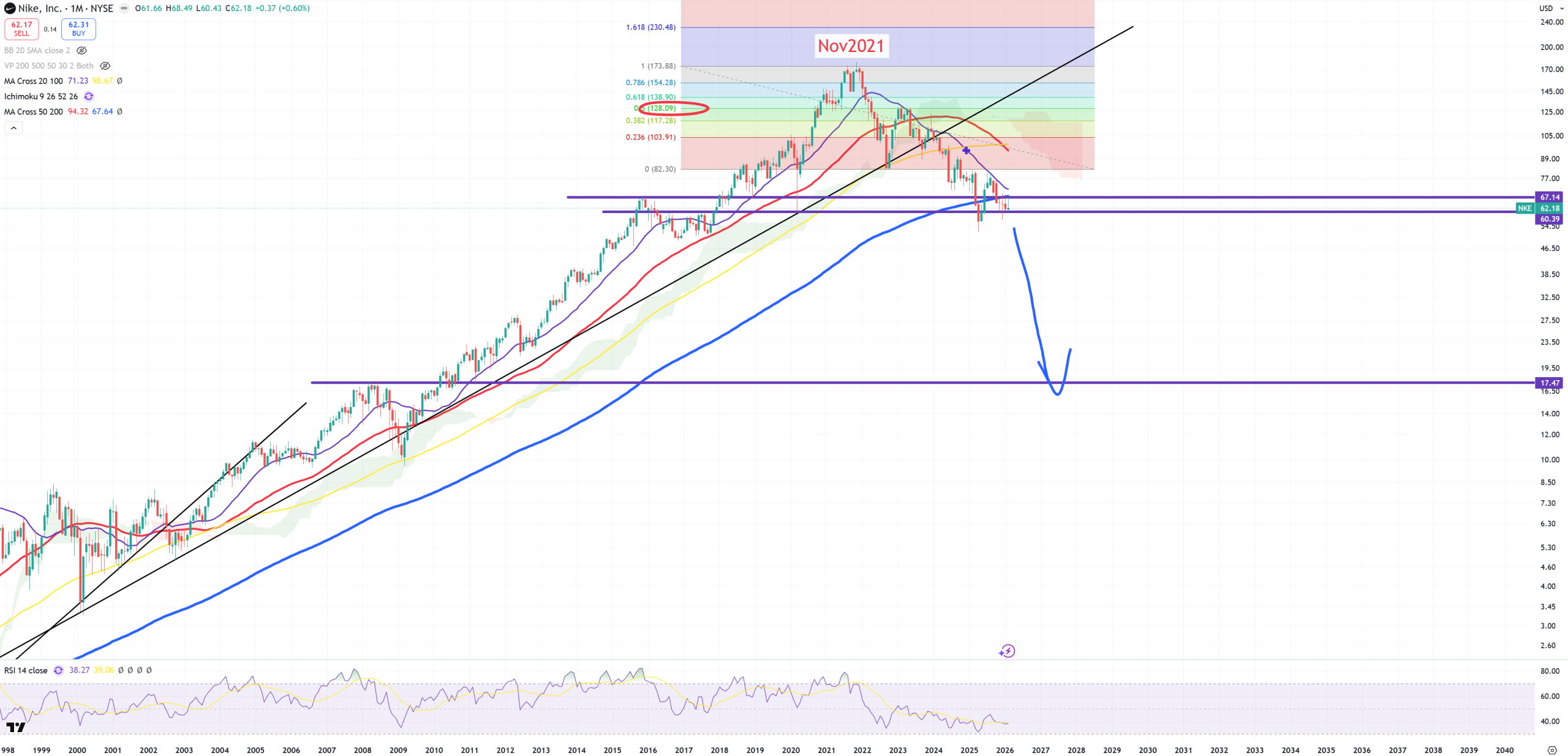 NKE – it looks like going bankrupt. 17$ target