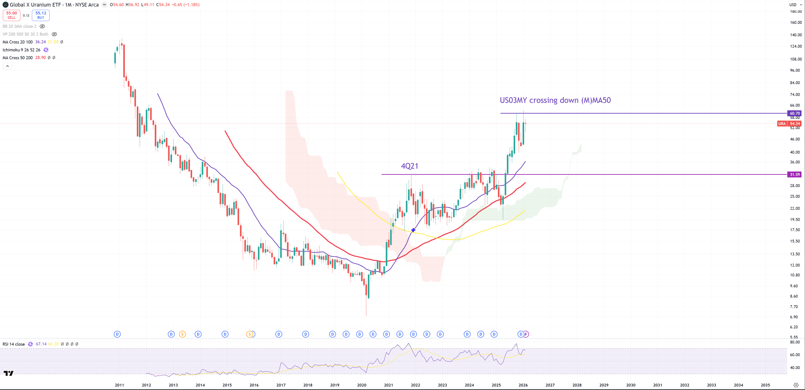 URA – I know many of you are obssesed about this ETF. I will leave 2 indicators marked and feel free to interpret this chart by yourself.