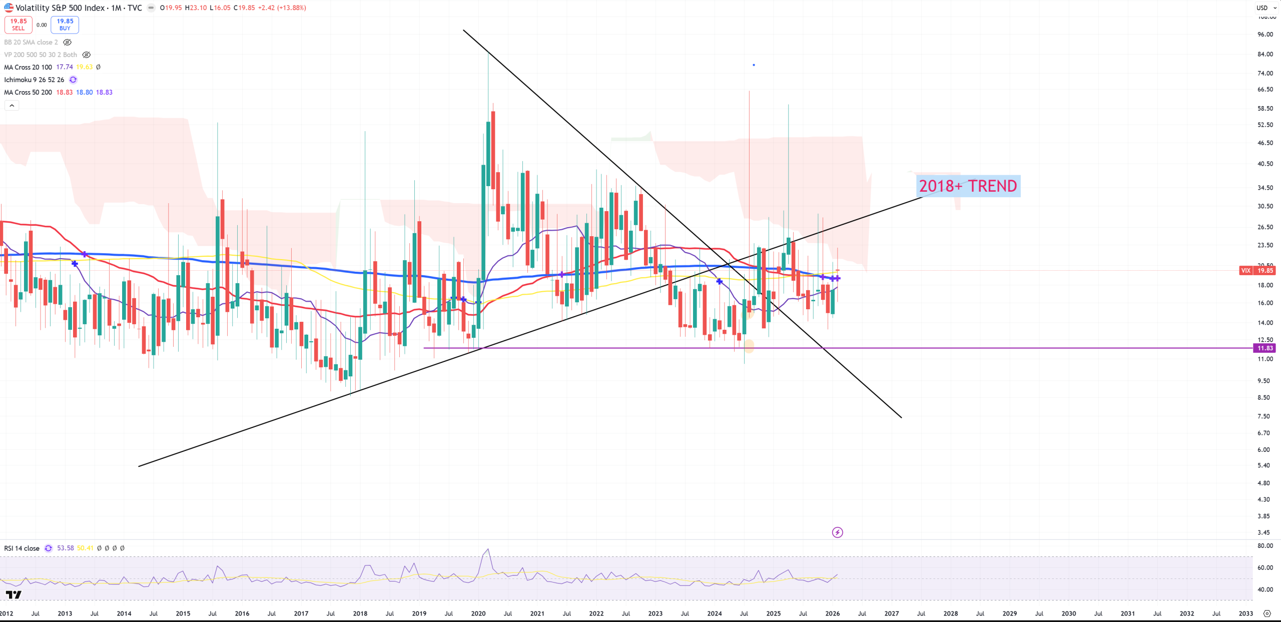 VIX – still below 2018 trend, but above all key (M)MAs