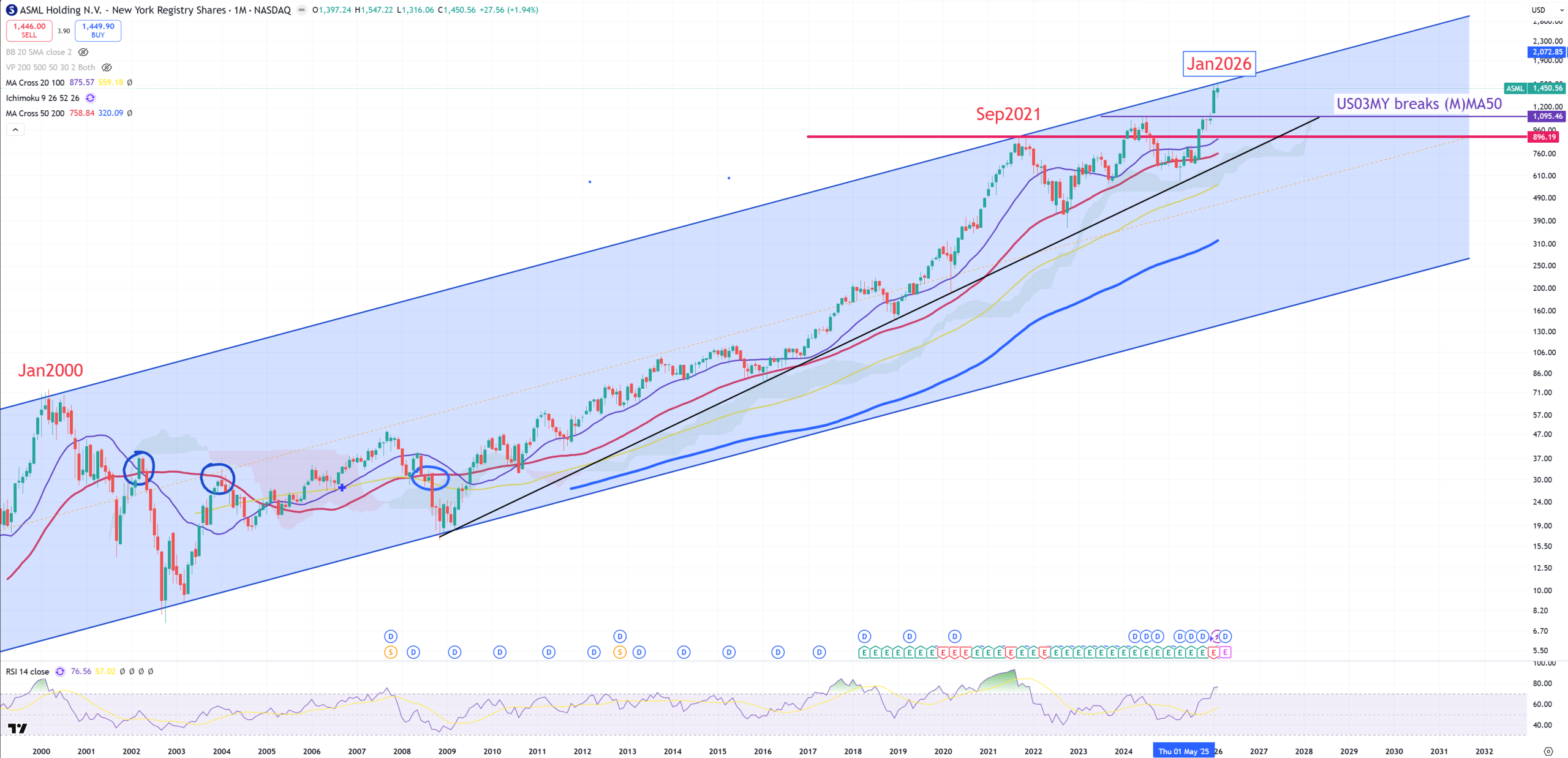 ASML – trend 2000-2021 matched with January 2026 level. US03MY break is on 1095$ level. Big break or rejection.