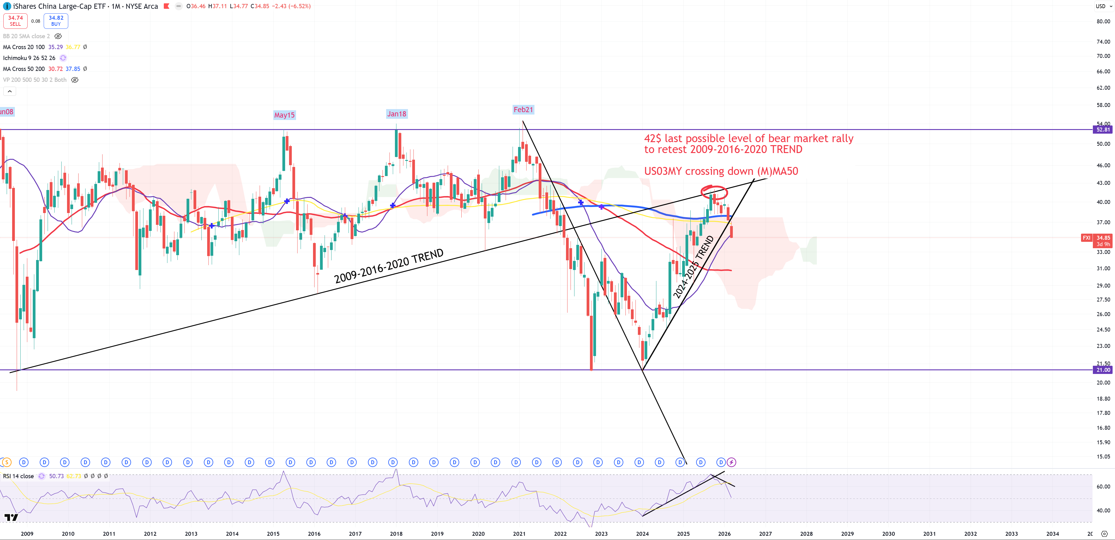 But just like SPX comes back below 1929-2000 trend, FXI (we need to have everything in $$$ to compare) placed a peak of its bear market rally and now keeps tanking giving us a sign that future Yuan weakness will arrive.