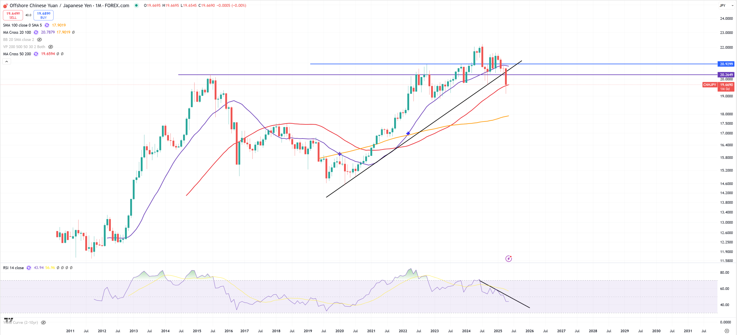 CNHJPY – this pair shows that dominance of CNH against JPY gone and now it’s flipped. JPY rules CNH. (M)MA50 holds peak in Jul 2024 – so the same as AUDJPY. In reality let’s tread CNHJPY and AUDJPY the same what means AUD = CNH, not really but AUD loves to track Yuan.