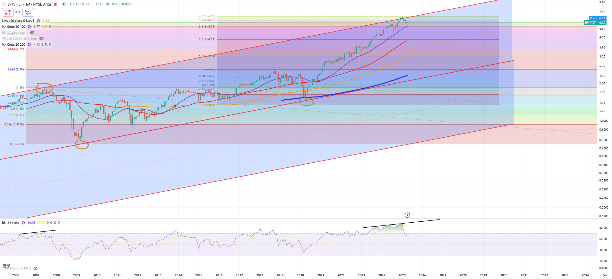 XAUUSD – trend is broken (M)RSI = 85, at some point of time it’ll retest this 1980-2011 TREND IMO so 2700$ level. Have it in mind. Because SPX/GOLD is broken and GOLD trend is broken too I expect it’ll be going way higher, but not in one line.