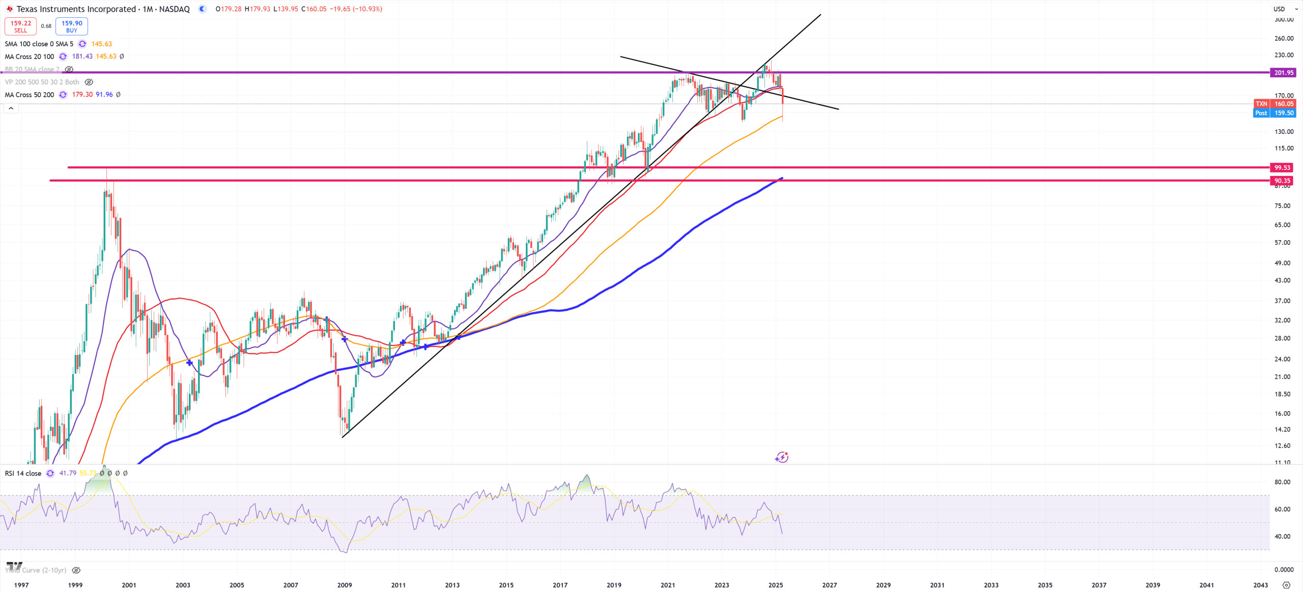 TXN – Texas Instruments and 2021 peak. Now below (M)MA50 – big support on (M)MA200 & 2001 peak = 90$.